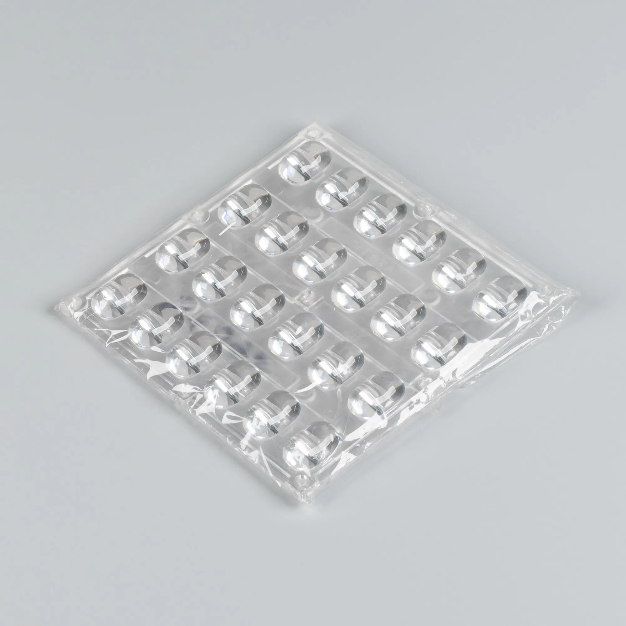 Блочная линза для мощных Emitter, угол обзора: вертикальный 135°, горизонтальный 60°, прозрачная линза. Материал PMMA, количество светодиодов на плате: 24. Длина 120 мм, ширина 120 мм, высота 10.2 мм.