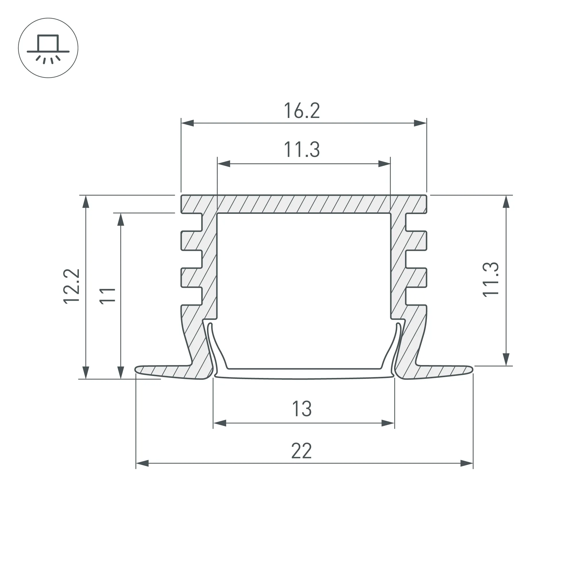 Алюминиевый анодированный профиль для светодиодных лент и линеек. Анодированный в чёрный цвет. Габаритные размеры (L×W×H): 2000x22x12,2 мм. Ширина площадки для ленты 11,3 мм. Экраны, заглушки и другие аксессуары приобретаются отдельно. Цена за 1 метр.