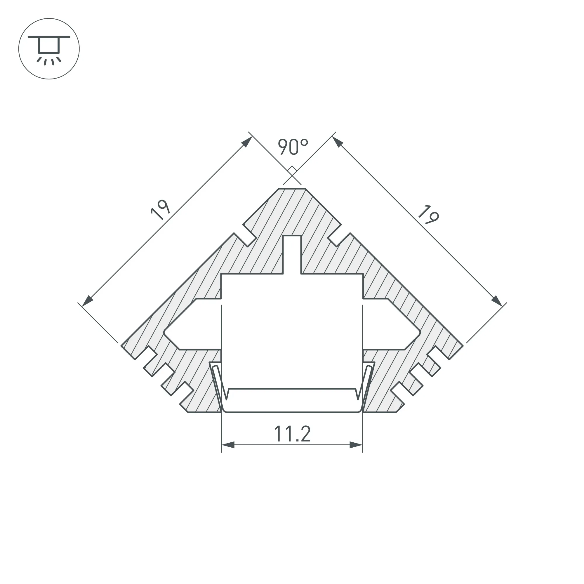 Алюминиевый анодированный угловой профиль для светодиодных лент и линеек. Габаритные размеры (L×W×H): 3000x19x19 мм. Ширина площадки для ленты 11,2 мм. Экраны, заглушки и другие аксессуары приобретаются отдельно. Цена за 1 метр.