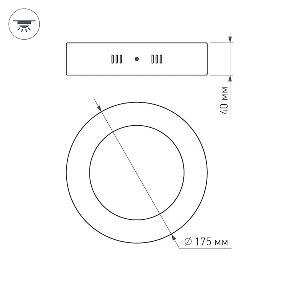 Накладная круглая панель 12Вт, цвет ТЁПЛЫЙ БЕЛЫЙ 3000K / 970 лм / 120°/ CRI(Ra)>80. Размер Ф175 x 40мм. Питание от сети AC 100-240V, драйвер в комплекте (арт.019617, 24-48V, 300mA, 12W).