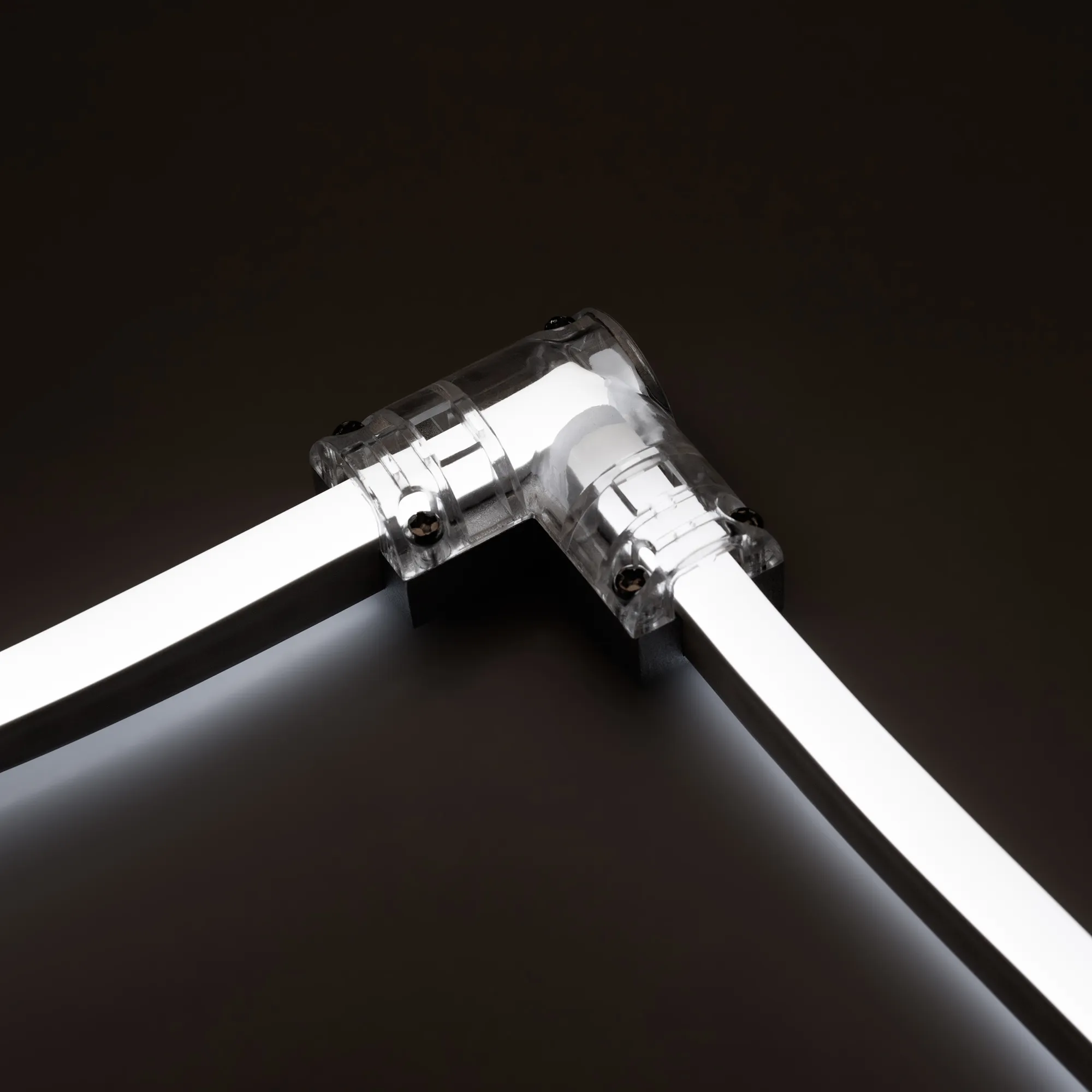 Угловой 2-х контактный соединитель для гибкого неона сечения 16x8mm серии NEON. Обеспечивает непрерывное соединение и сплошную линию свечения без разрывов. Требуется доп.герметизация для соединения IP65. Материал-алюминий, прозрачный пластик. Размеры ДхШ: 48х41мм. Цена за 1шт.