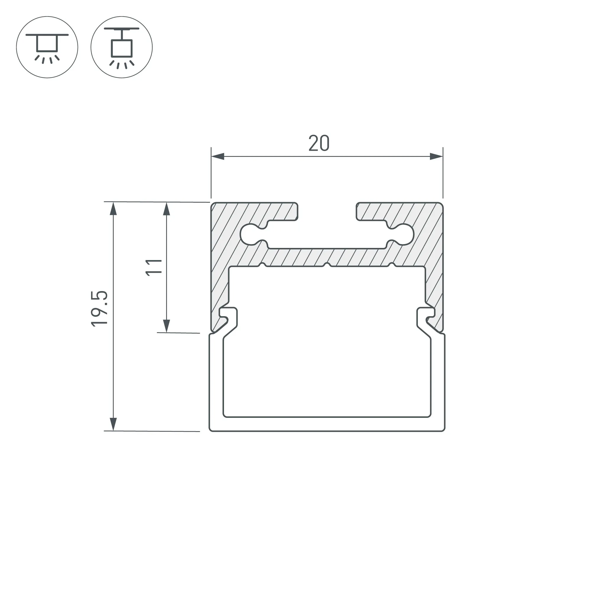 Алюминиевый анодированный профиль для светодиодных лент и линеек. Габаритные размеры (L×W×H): 2000x20x11 мм. Ширина площадки для ленты 16,5 мм. Экраны, заглушки и другие аксессуары приобретаются отдельно. Цена за 1 метр. Модификация 2018г.