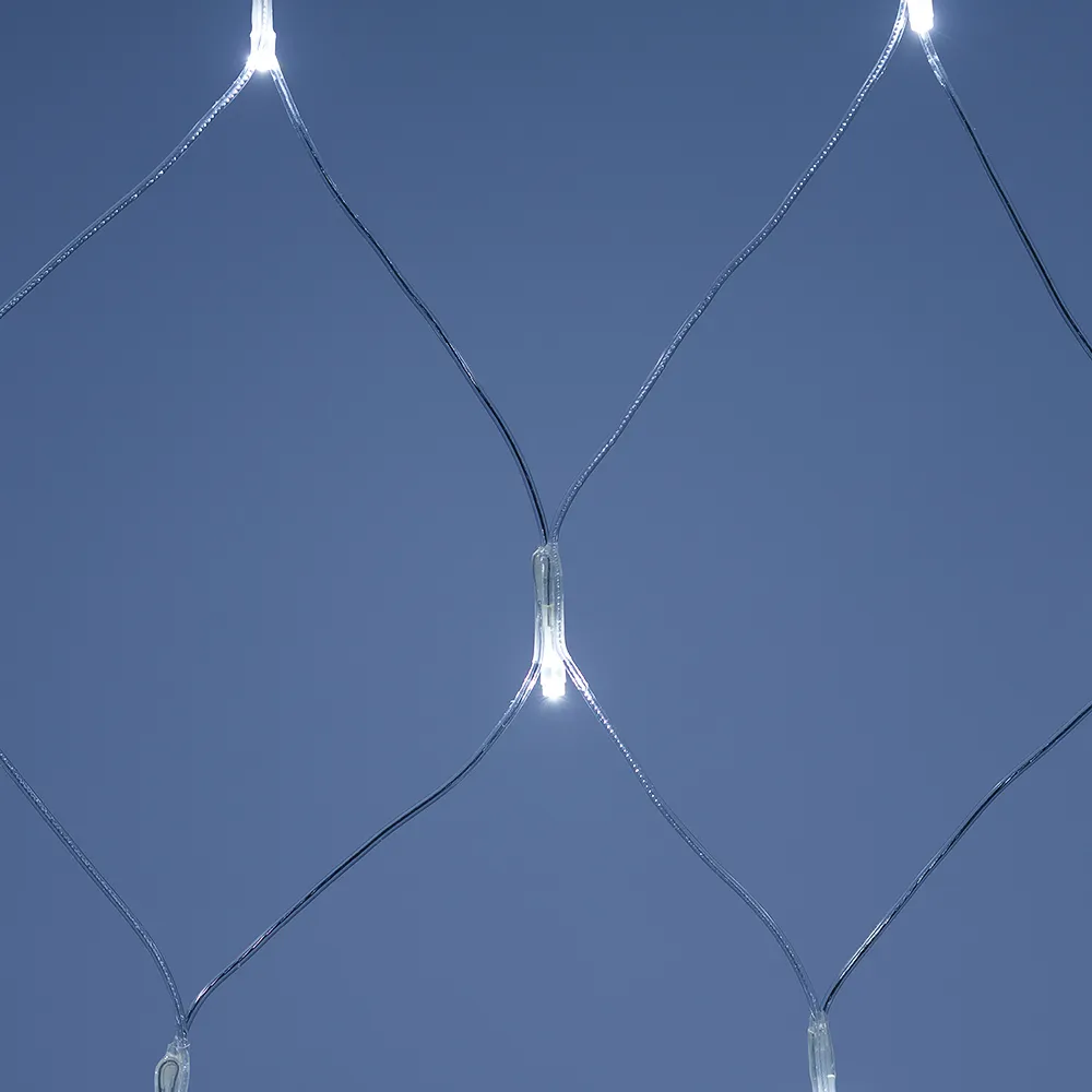 Светодиодная сеть Home. 1800x1500 (длина 1800 мм, высота 1500 мм). Цвет свечения БЕЛЫЙ (6000 К). 180 светодиодов размером 5 мм со статическим и 8 динамическими эффектами свечения с резким световым рисунком (прозрачная вогнутая линза). Провод прозрачный, ПВХ. Питание 230 В, Мощность 15 Вт, защита IP20, применение в помещении. Аксессуары для подключения и выбора режима свечения в комплекте.