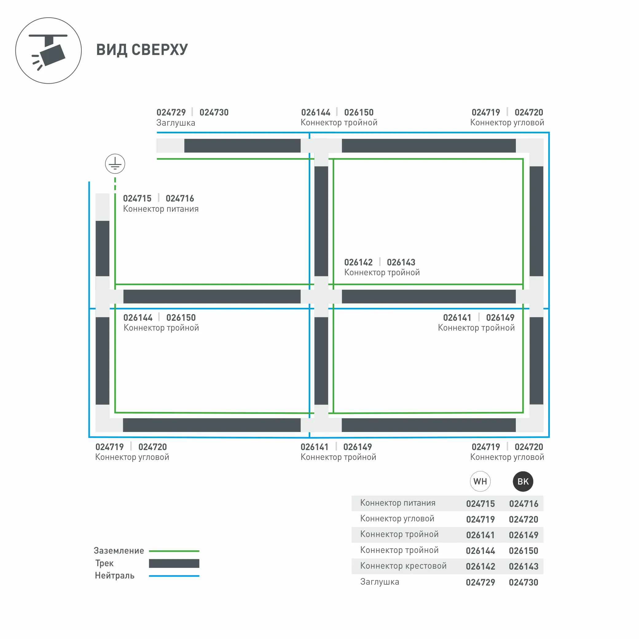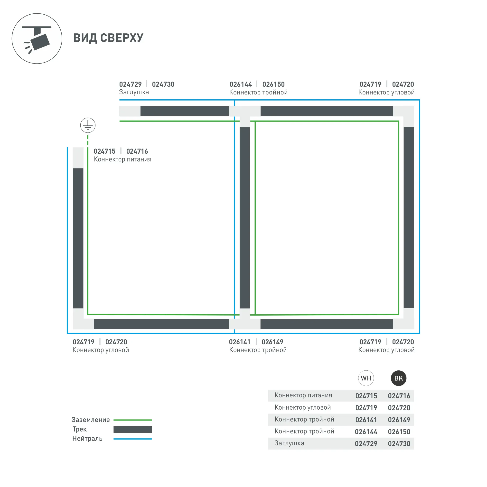 Коннектор-заглушка для подачи питания в треки 4TR, правая (определение правого коннектора происходит относительно контакта заземления системы). Цвет белый.