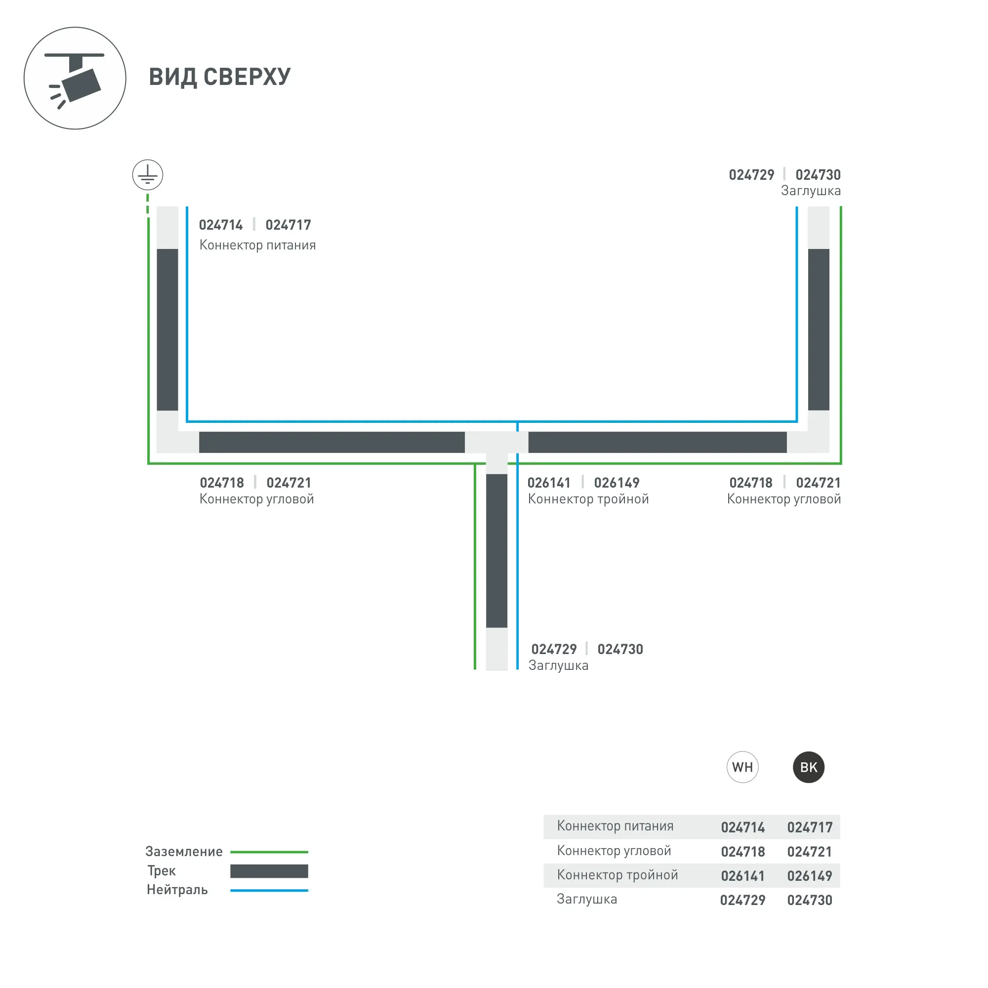 Угловой коннектор 90 градусов, питание по внешней стороне (определение необходимого коннектора происходит относительно контакта заземления системы). Цвет белый. 99х99х33 мм с контактами, 66х66х33 мм без контактов. При использовании с треками и аксессуарами другой серии возможно отличие по цвету.