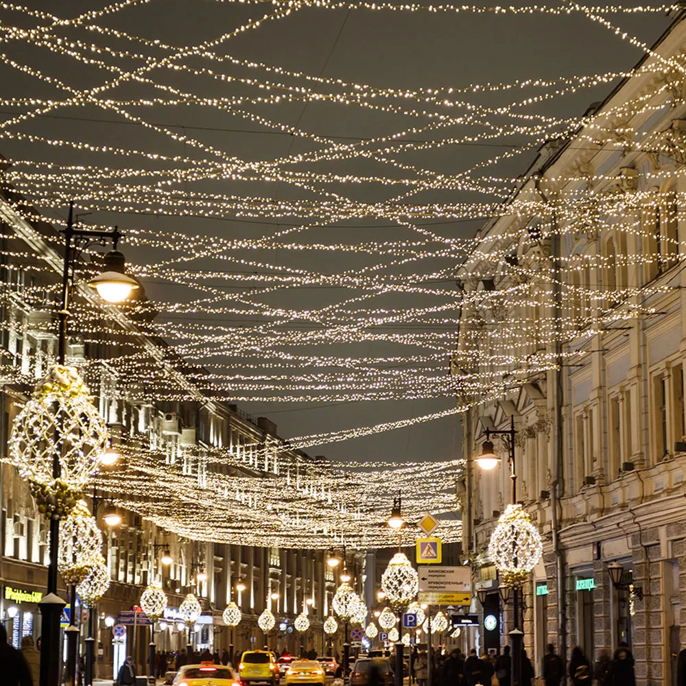Светодиодная нить Classic. Размер 10000 мм. Цвет свечения ТЕПЛЫЙ БЕЛЫЙ (3000 К). 100 светодиодов размером 7 мм со статическим эффектом свечения с резким световым рисунком (прозрачная вогнутая линза). Провод прозрачный, ПВХ. Питание 230 В, Мощность 7 Вт, защита IP65, применение в помещении и на улице под навесом. Аксессуар для подключения приобретается отдельно.