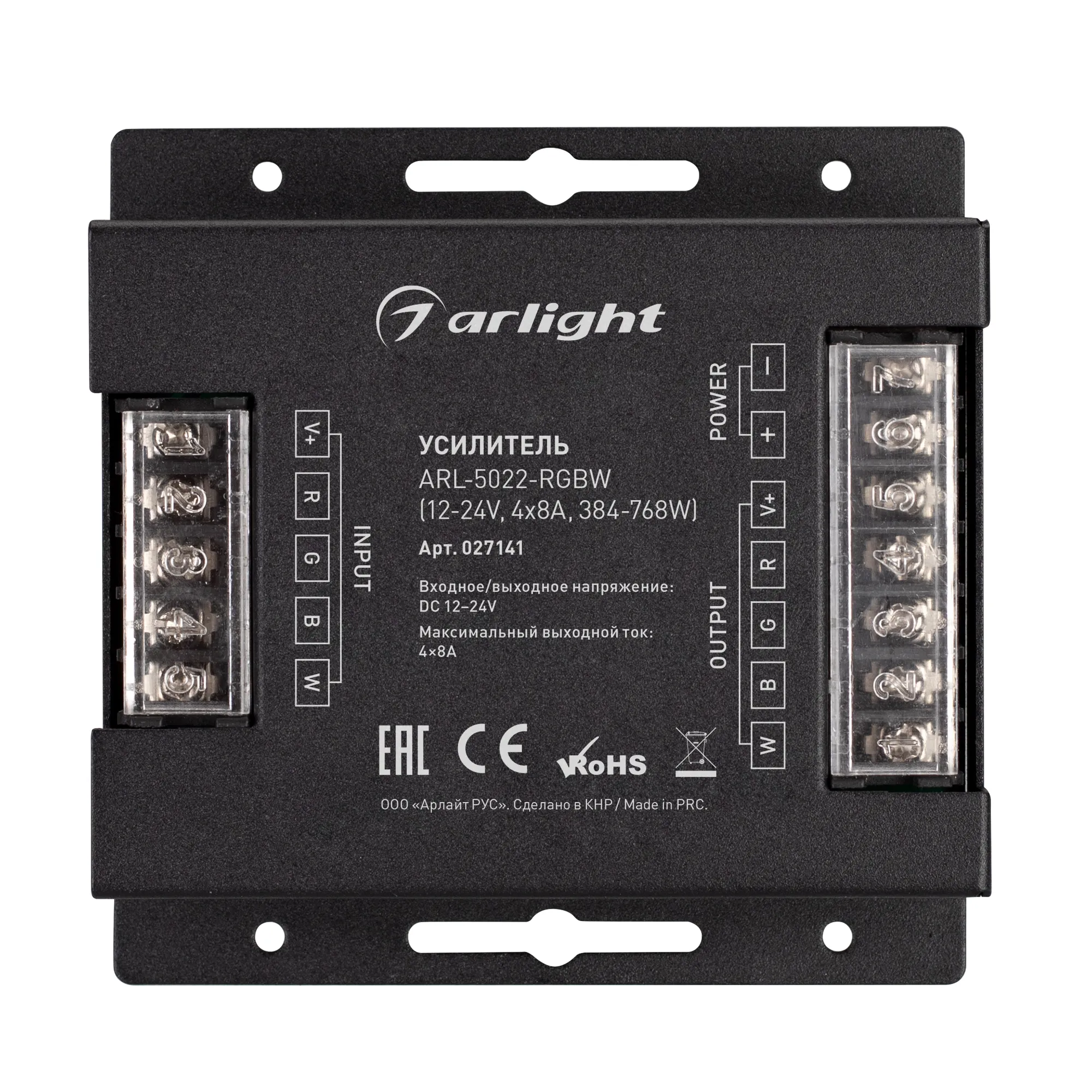 В магазине Arled Market Вы можете купить "Усилитель ARL-5022-RGBW (12-24V, 4x8A, 384-768W) (Arlight, IP20 Металл, 3 года)"