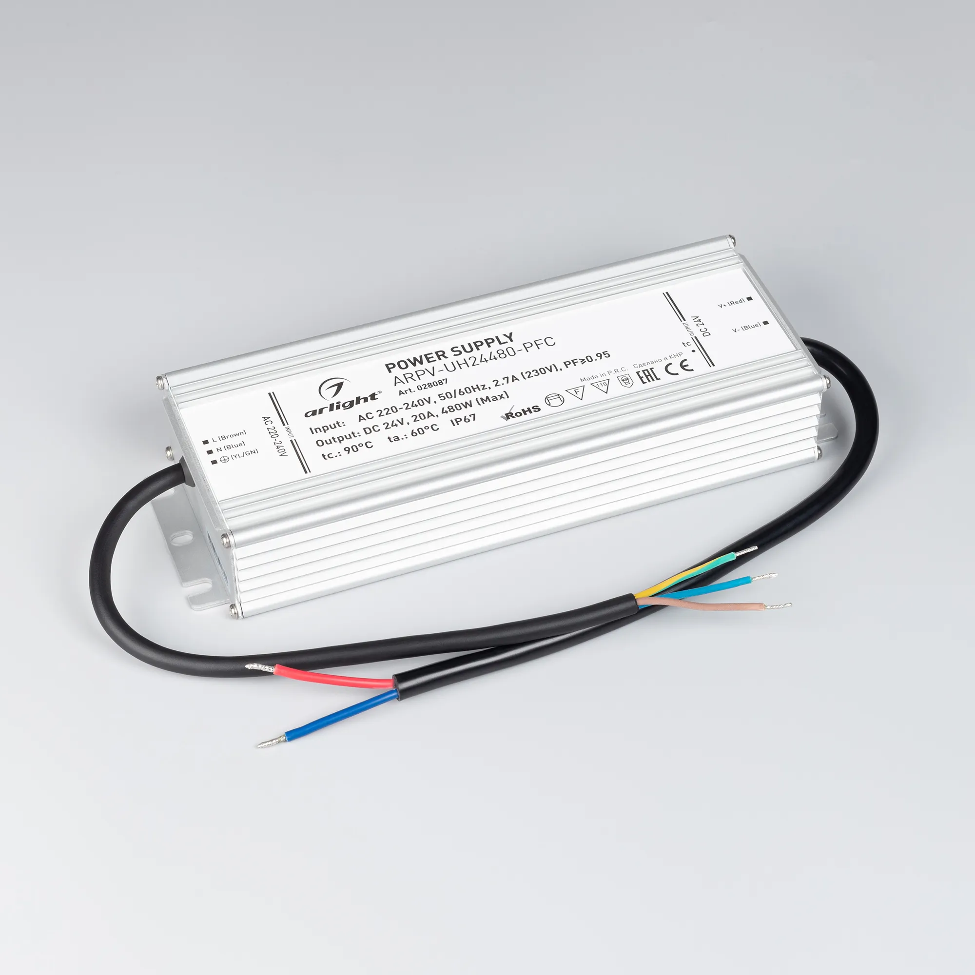В магазине Arled Market Вы можете купить "Блок питания ARPV-UH24480-PFC (24V, 20A, 480W) (Arlight, IP67 Металл, 7 лет)"