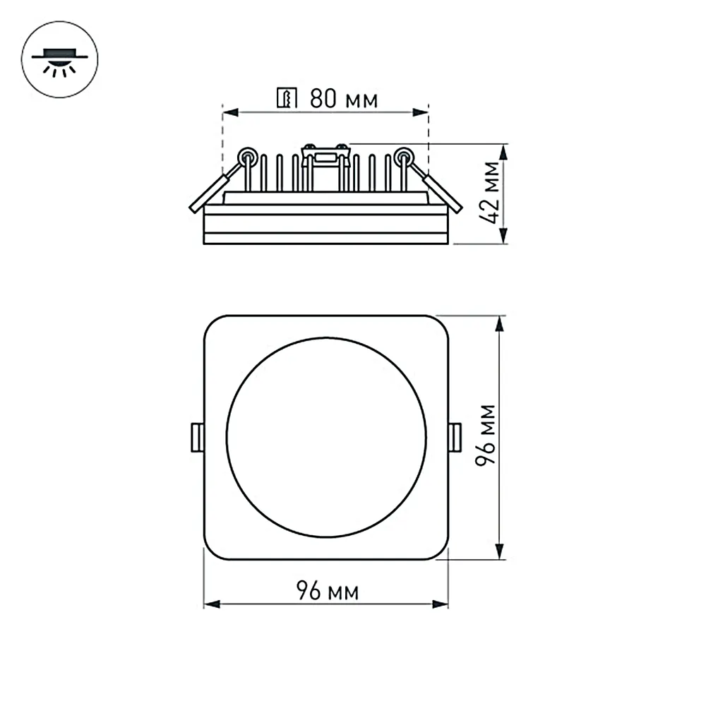 Квадратный светильник с контурным свечением.Корпус IP44 белый + вставка поликарбонат PC. Цвет ДНЕВНОЙ 4000К, св.поток 700 лм, угол 120°+180°. Питание 180-240VAC (драйвер в к-те 300mA 20-40V), мощность 10Вт. Размеры 96х96х42 мм, установка в отв.80х80 мм, высота мин.40 мм.
