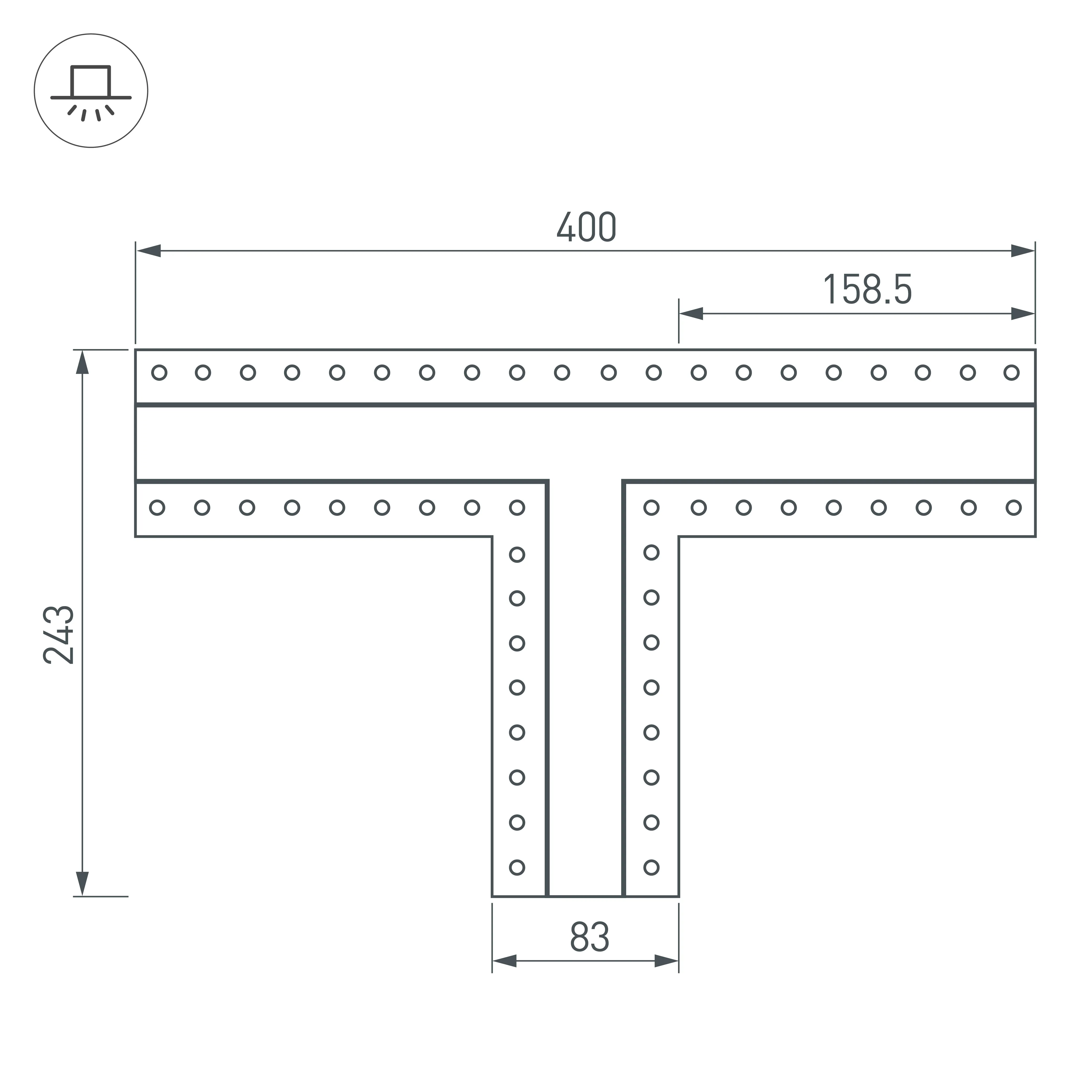 Тройник в сборе, для профиля SL-LINIA32-FANTOM. В комплекте тройник с экраном, соединители, винты, шестигранный ключ.