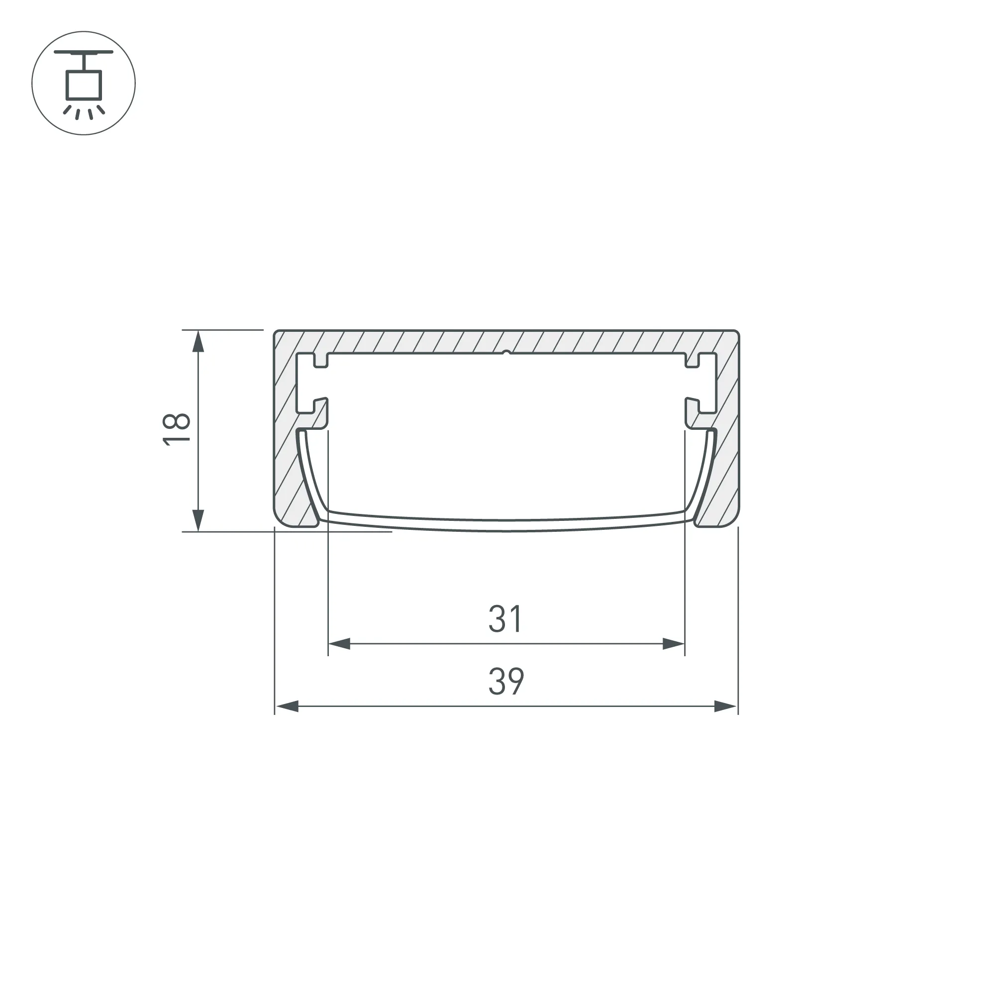Алюминиевый анодированный накладной/подвесной профиль для светодиодных лент и линеек. Габаритные размеры (L×W×H): 2000x39x18 мм. Ширина площадки для ленты 31 мм. Экраны, заглушки и другие аксессуары приобретаются отдельно. Цена за 1 метр.