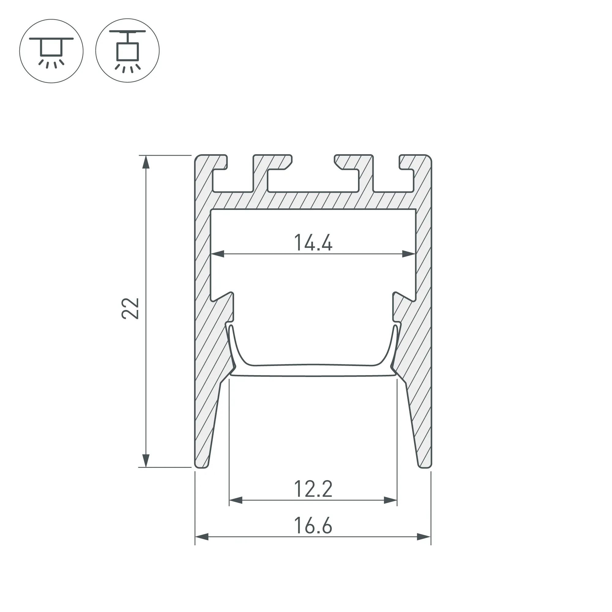 Алюминиевый анодированный профиль для светодиодных лент и линеек. Экран утоплен в плоскости профиля, что позволяет скрыть источник света от прямого контакта с глазами. Габаритные размеры (L×W×H): 2000x16,6x22 мм. Ширина площадки для ленты 14,4 мм. Экраны, заглушки и другие аксессуары приобретаются отдельно. Цена за 1 метр.