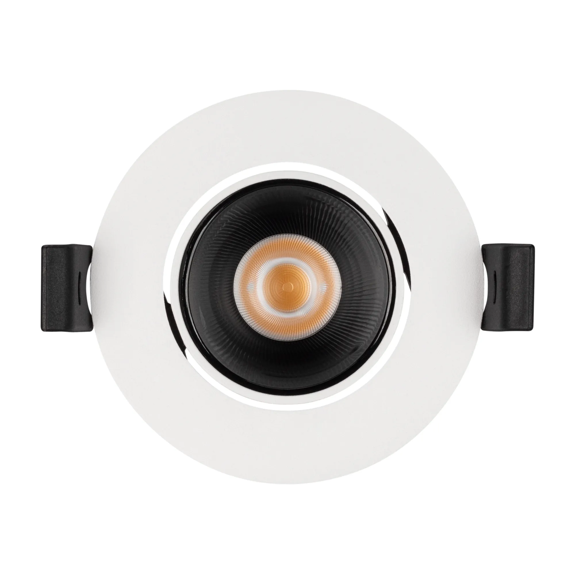 Встраиваемый поворотный светильник даунлайт. Мощность 8.4 Вт, св. поток 800 лм, 95 лм/Вт, дневной 4000 K, CRI>90, UGR<16, угол 32°, напряжение питания 230 В. Белый круглый корпус из алюминия, черный ГЛЯНЦЕВЫЙ отражатель из PMMA, степень защиты IP20. Размер: диаметр 82 мм, высота 51 мм. Монтаж встраиваемый, установочное отверстие: диаметр 75 мм. Драйвер 21-42 В, 200 мА, пульсация <2%.