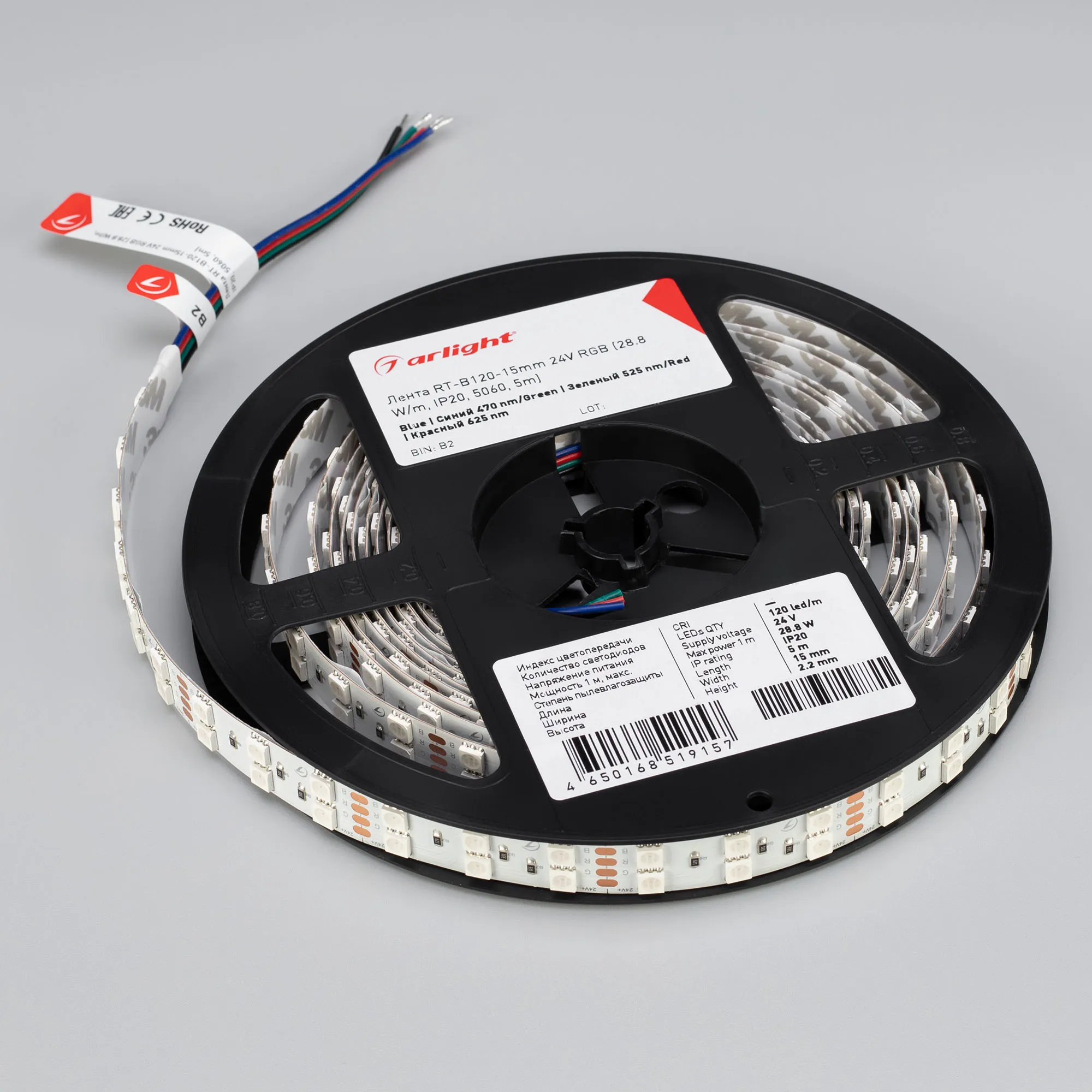 В магазине Arled Market Вы можете купить "Лента светодиодная RT-B120-15mm 24V RGB (28.8 W/m, IP20, 5060, 5m) (Arlight, Открытый)"