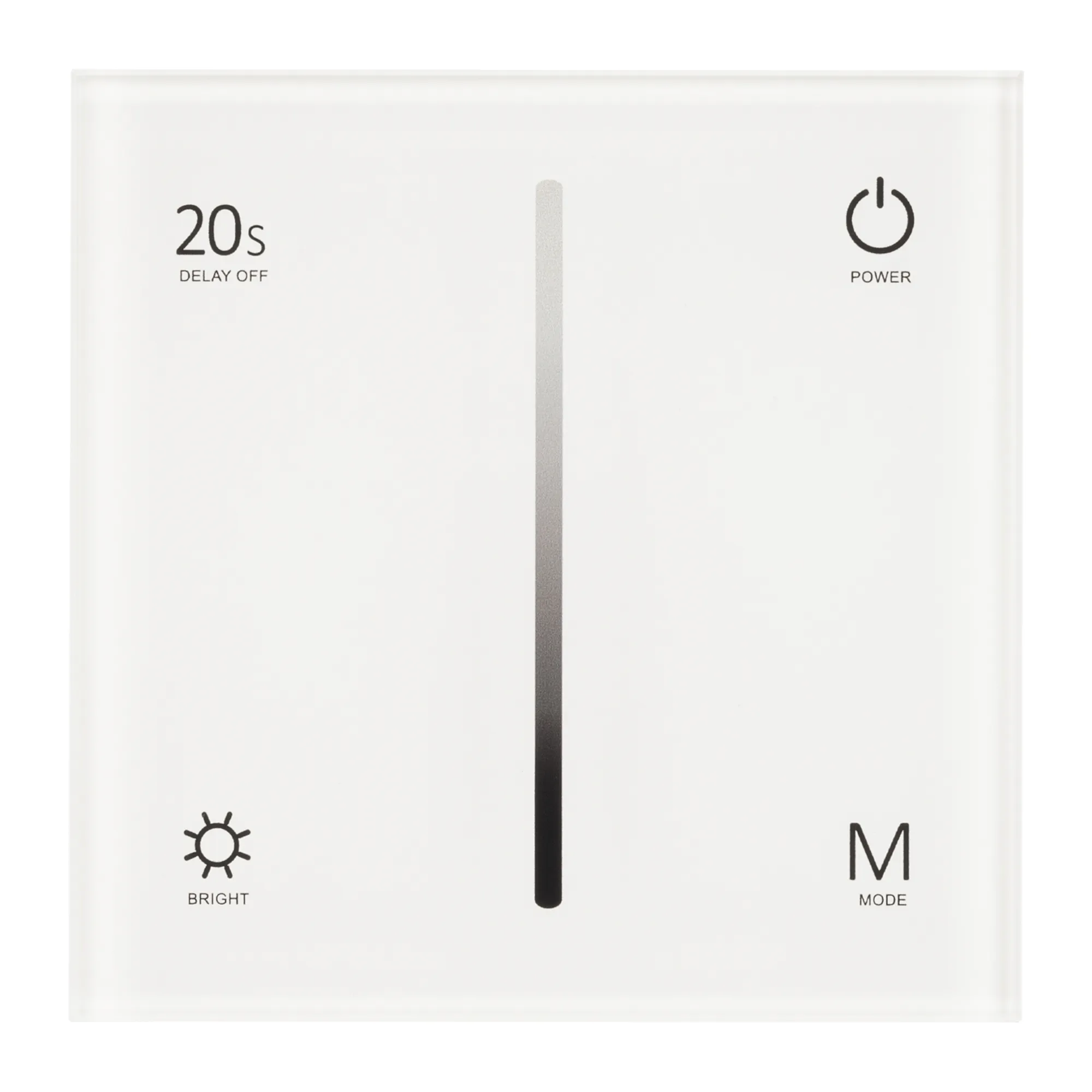 Встраиваемая сенсорная стеклянная панель 2.4 ГГц, цвет белый. Для управления одноцветными источниками света (ШИМ). Управление яркостью с помощью сенсорной полосы. Работает в режиме master/slave и может выполнять функцию независимого контроллера. Питание/рабочее напряжение 12-24VDC, 4 параллельных канала по 3А максимальной нагрузки на канал, максимальная суммарная мощность 144-288W. Габариты 86х86х33 мм. Панель совместима с диммерами серии SMART. Возможно управление пультами (см. совместимые товары) или другими панелями.