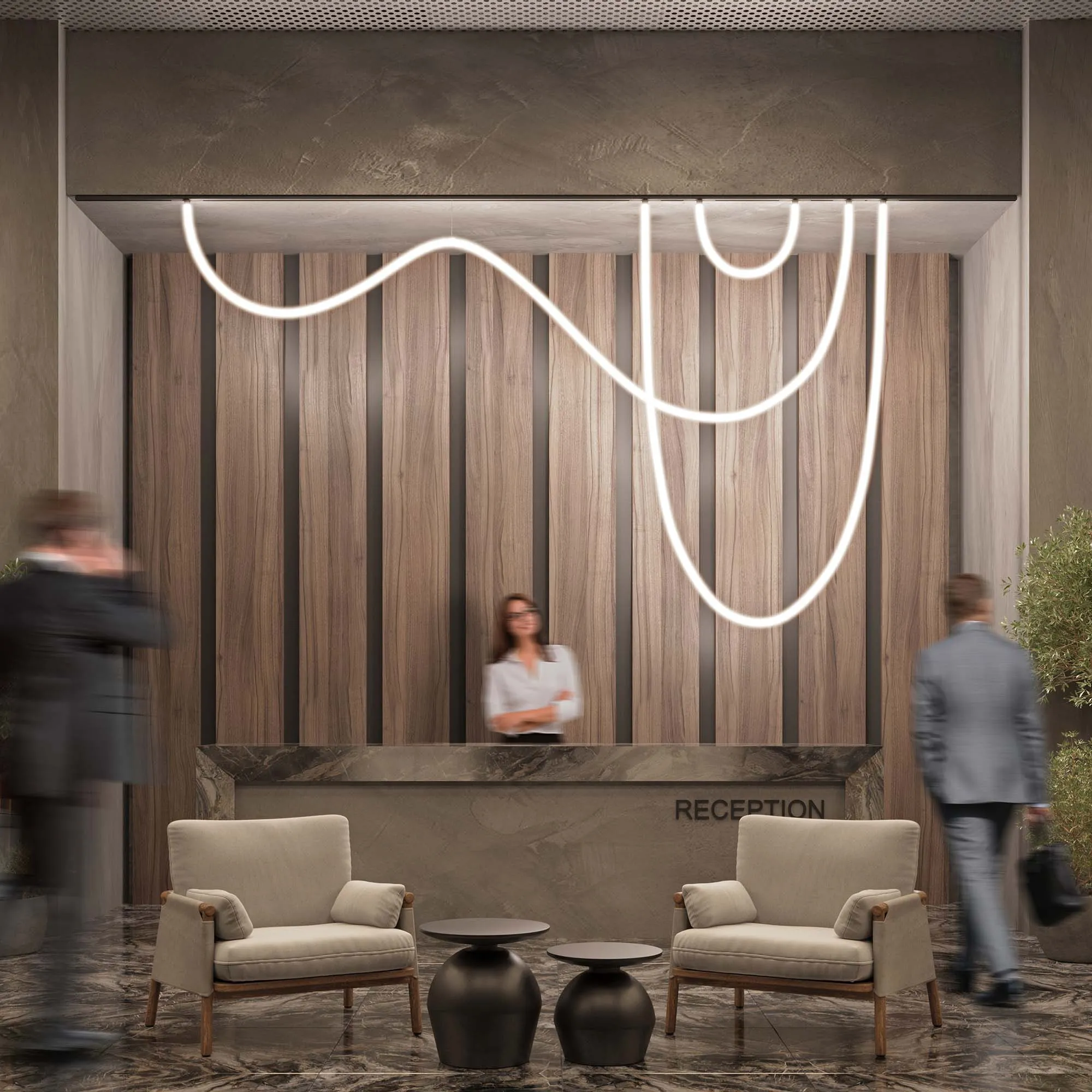 Светильник гибкий для магнитных треков серии FLEX. Мощность 70 Вт, св. поток 4700 лм, 67 лм/Вт, дневной 4000 K, CRI>90, угол 360°, напряжение питания 48 В. Матовый белый фигурный корпус из силикона. Размер: диаметр 30 мм, длина 5000 мм. Монтаж на магнитный трек FLEX. Чтобы подключить светильник к треку необходимо использовать адаптер 034068.