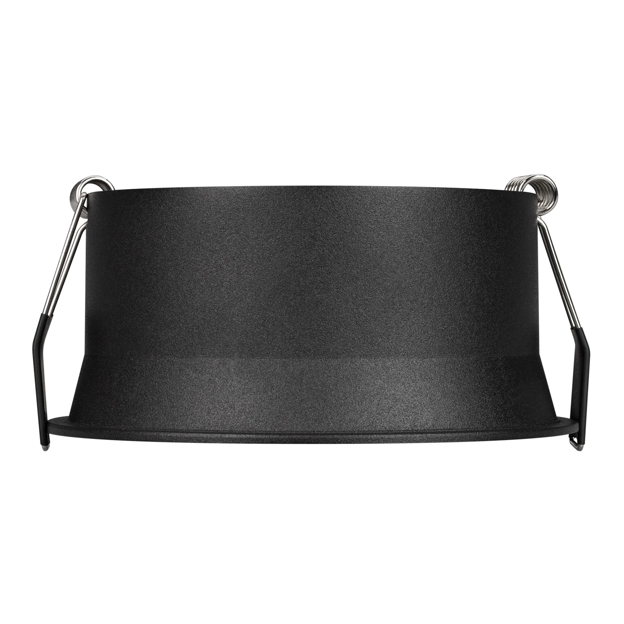 Встраиваемый светильник даунлайт. Мощность 16 Вт, св. поток 882 лм, 61 лм/Вт, тёплый 3000 K, CRI>90, угол 85°, напряжение питания 230 В. Чёрный круглый корпус из алюминия, степень защиты IP20. Размер: диаметр 125 мм, высота 60 мм. Монтаж встраиваемый, установочное отверстие: диаметр 115 мм. Драйвер 27-42 В, 400 мА, пульсация <2%.