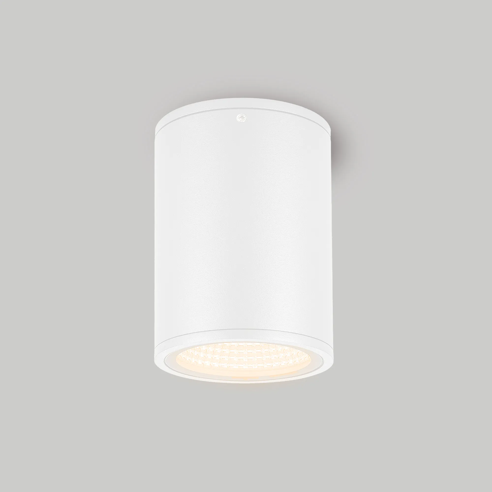 Накладной светильник 12Вт, белый алюминиевый корпус, оптическое закаленное стекло. Цвет ДНЕВНОЙ 4000K, св.поток 790лм, CRI(Ra)>80, угол 44°. Размер Ф90x137мм. IP54. Питание AC230V, 12Вт, встроенный драйвер 30-42 В, 300 мА.