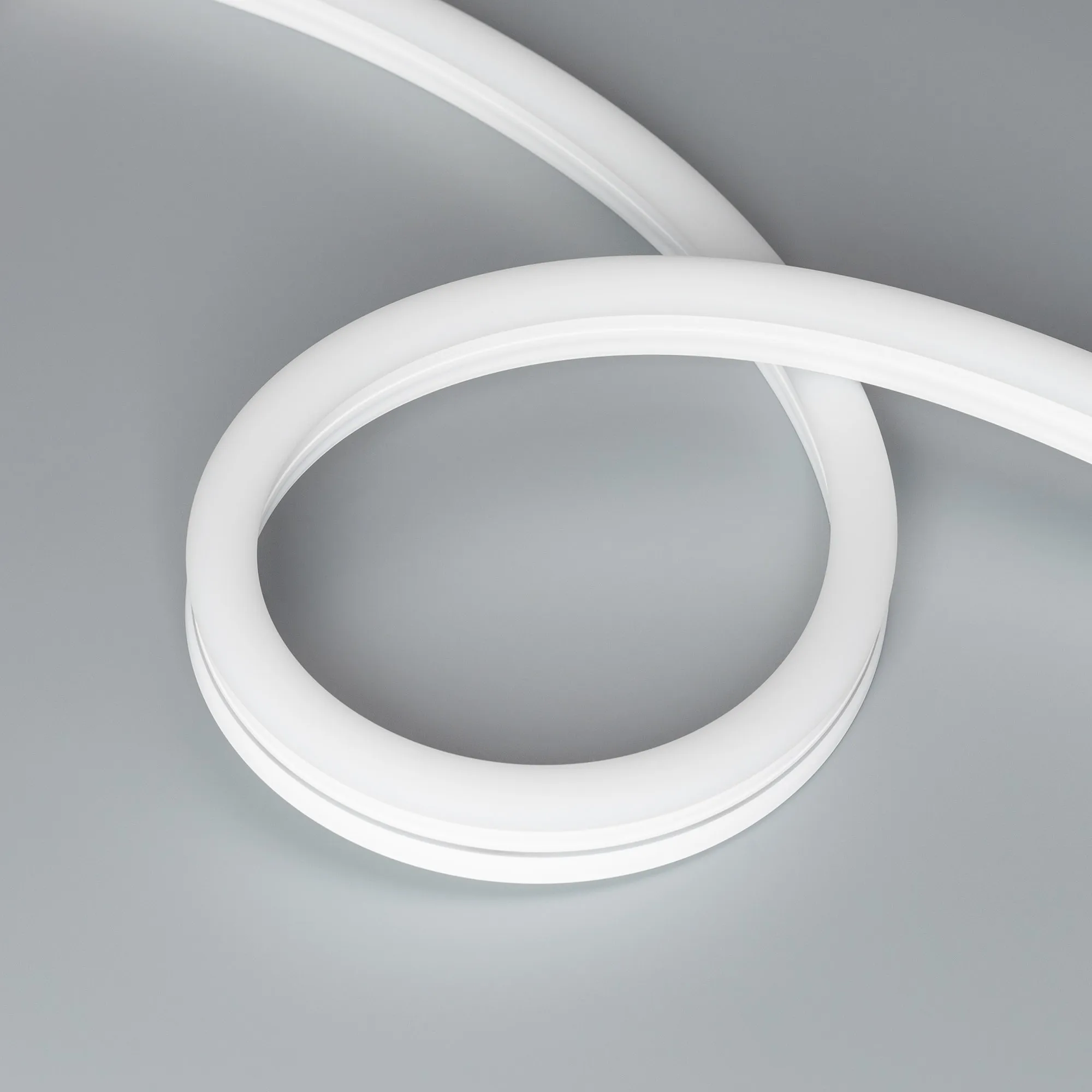 Гибкая герметичная лента (неон серии MOONLIGHT), сечение 12×24 мм. Светодиоды SMD 2835 140 шт/м. Цвет свечения ТЕПЛЫЙ БЕЛЫЙ (3000 К), индекс цветопередачи CRI>80, световой поток 440 лм/м, угол излучения 178°. Мощность 9.6 Вт/м, питание 24 В. Класс пылевлагозащиты IP68. Размеры 5000×12×24 мм. Мин. отрезок 50 мм. Горизонтальный изгиб SIDE, минимальный радиус изгиба 60 мм. Вывод кабеля с двух сторон. Катушка 5 м. Цена за 1 м. Гарантия 3 года.