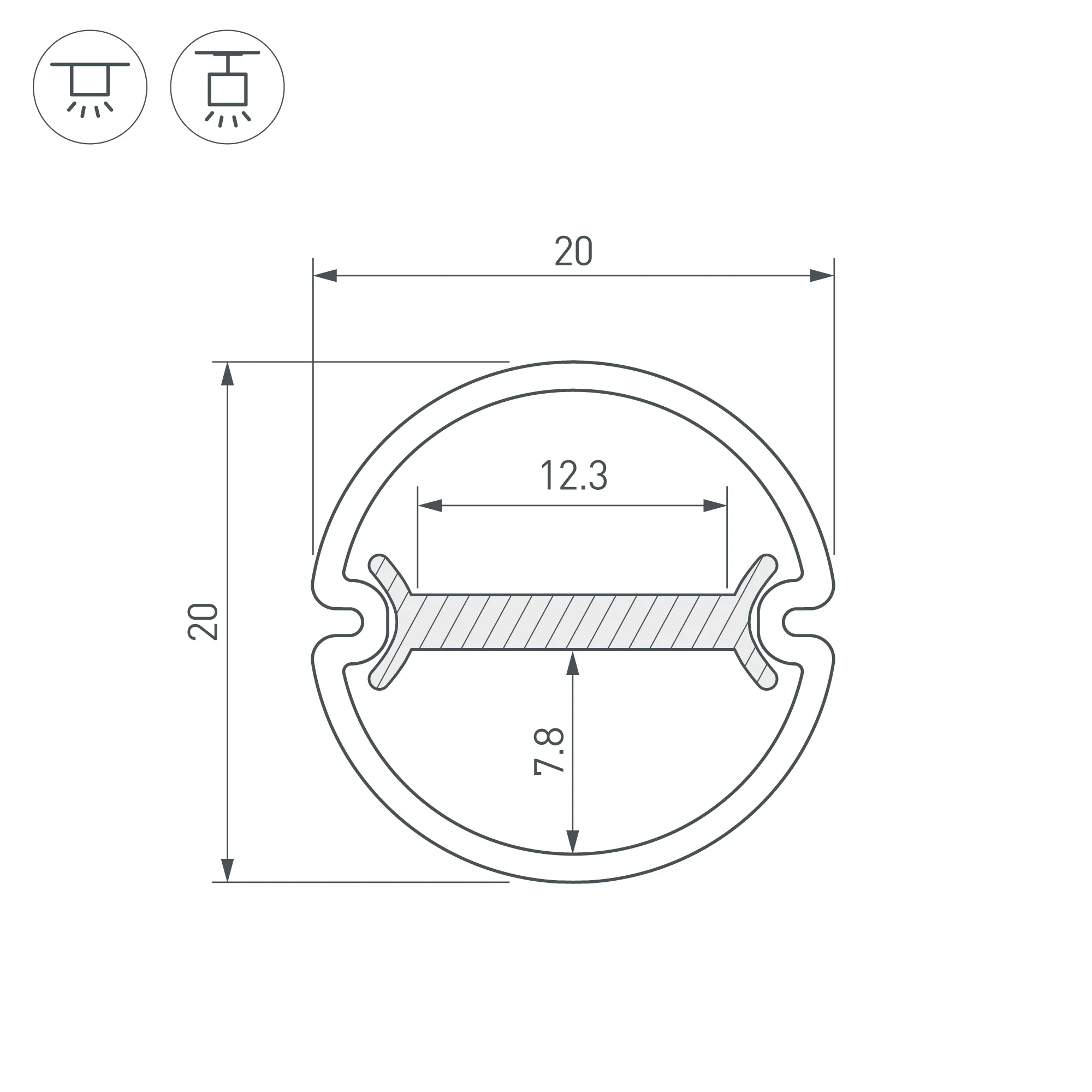 Алюминиевый анодированный двухсторонний круглый профиль для светодиодных лент и линеек. Габаритные размеры профиля (L×W×H): 2000x15x5 мм. Габаритные размеры профиля с экраном (L×D): 2000xD20 мм. Ширина площадки для ленты 12,3 мм. Экраны, заглушки и другие аксессуары приобретаются отдельно. Цена за 1 метр.