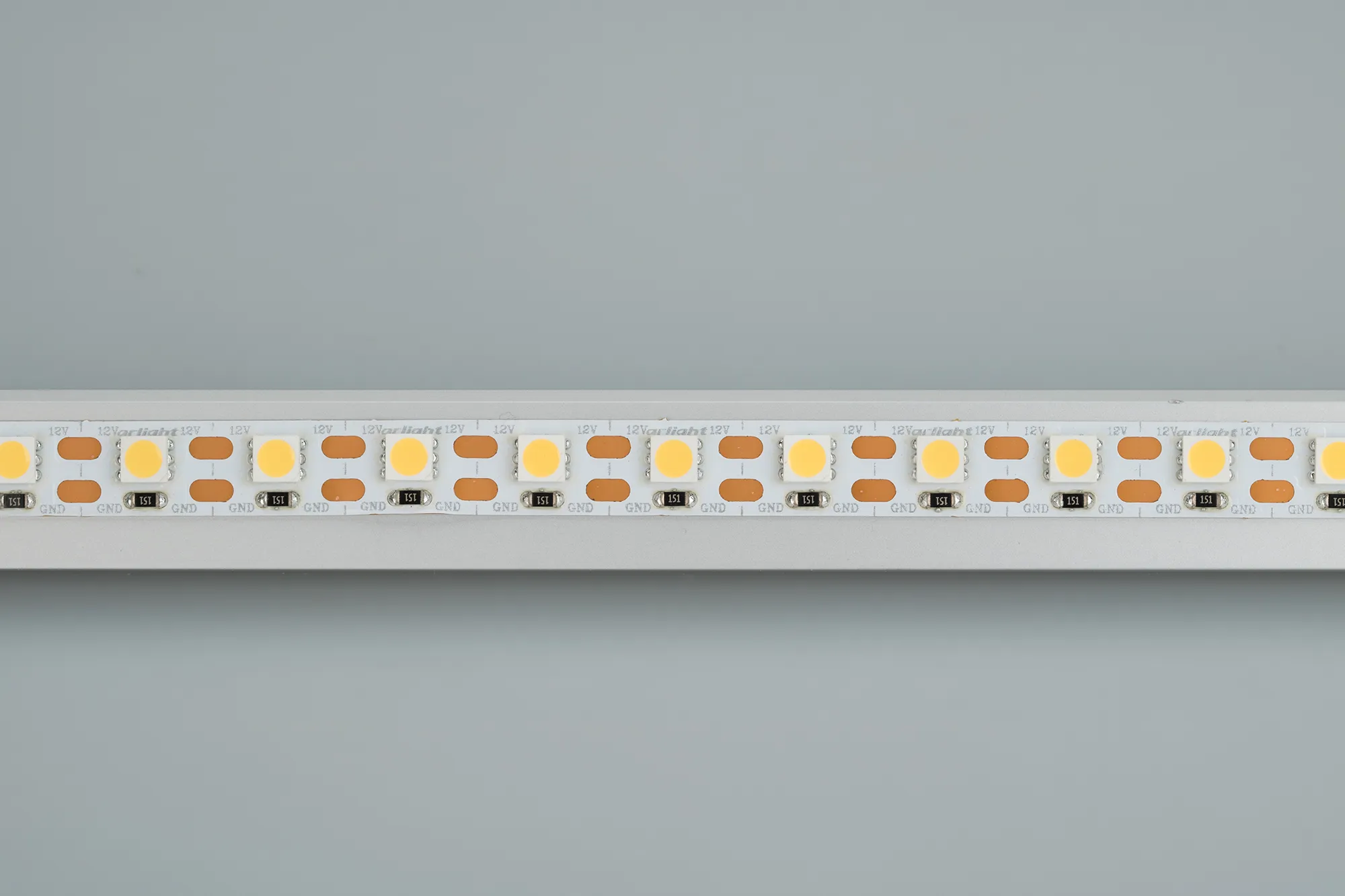 Поставка под заказ от 1000 м. Гибкая лента LUX, разрезается по одному светодиоду smd 5060, 72шт/м (360шт на 5м), белая плата 10мм, скотч 3М. Цвет ТЁПЛЫЙ (как свеча) 2200-2400K. Питание 12V, мощность 15.6 Вт/м (78 Вт на 5м), угол 120°, цветопередача CRI>85. Размеры 5000х10x2.2мм. Мин.отрезок 13.89мм, 1шт светодиод. Пакет 5м. Цена за 1м. Рекомендуется установка на профиль.