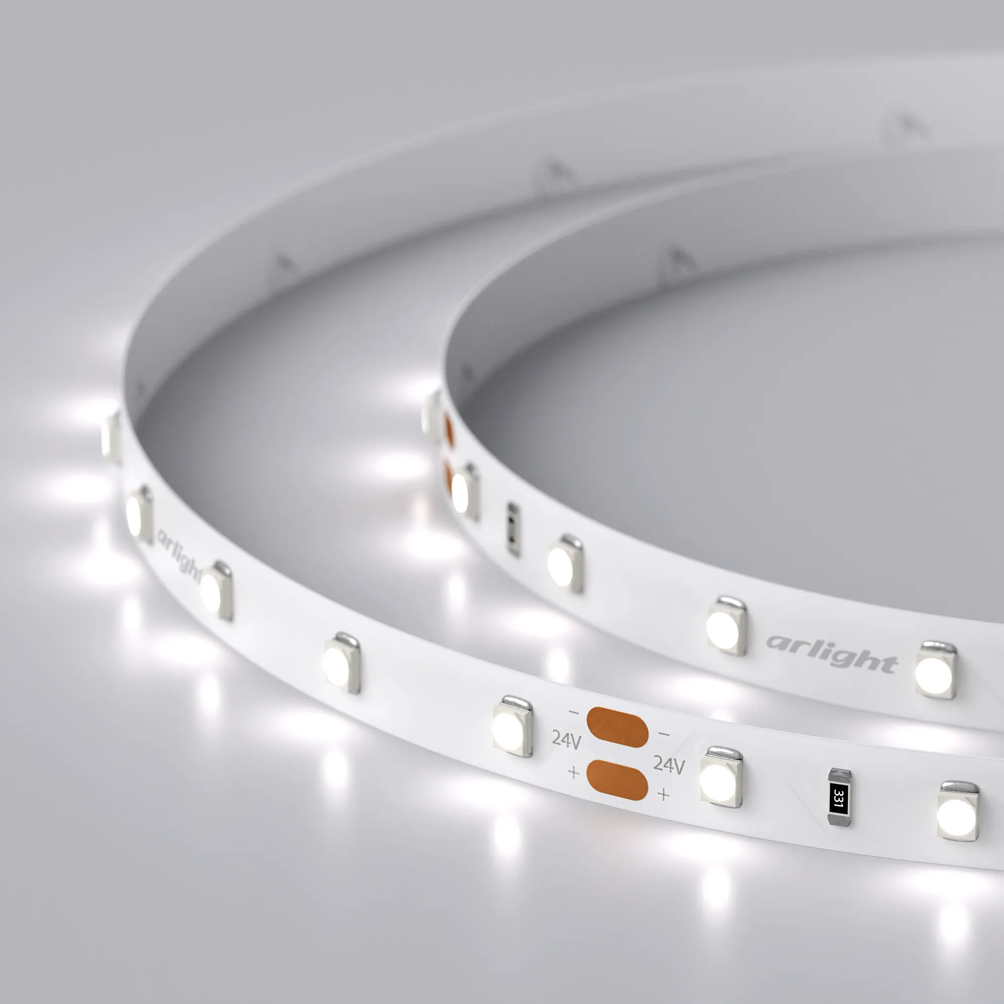 Лента светодиодная RT 2-5000 24V White6000 (3528, 300 LED, LUX) (Arlight, 4.8 Вт/м, IP20)