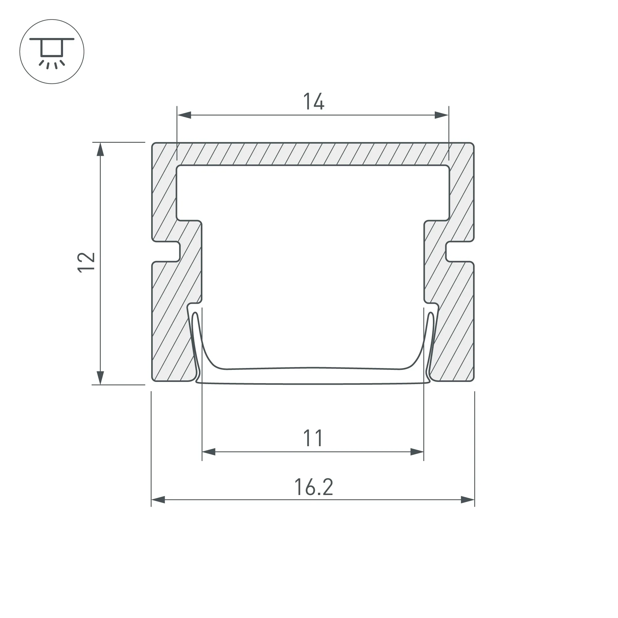 Алюминиевый профиль для светодиодных лент и линеек. Габаритные размеры (L×W×H): 2000x16,2x12 мм. Ширина площадки для ленты 14 мм. Экраны, заглушки и другие аксессуары приобретаются отдельно. Цена за 1 метр.