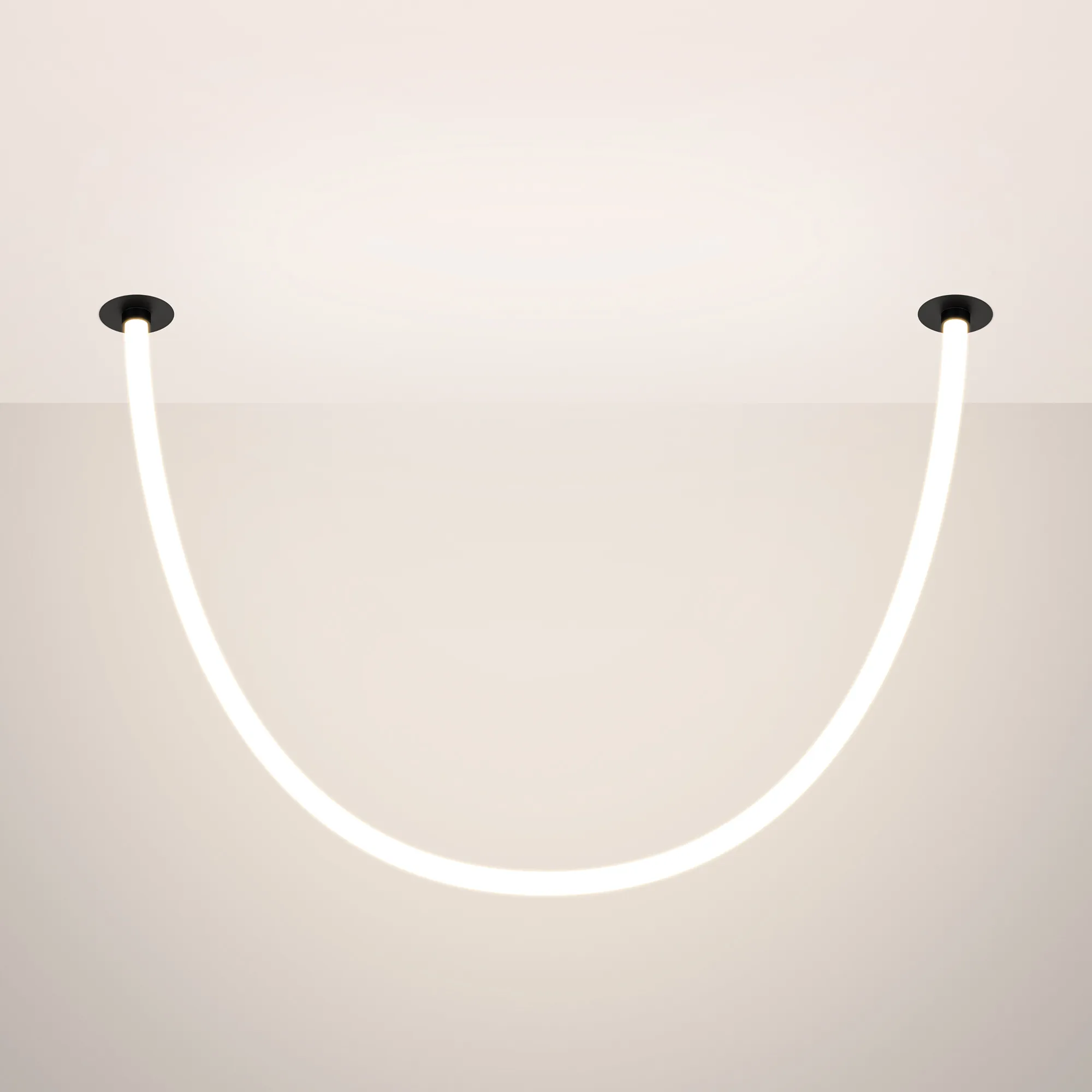 Подвесной светильник. Мощность 18 Вт, св. поток 980 лм, 54 лм/Вт, тёплый 3000 K, CRI>90, угол 360°, напряжение питания 230 В. Черный круглый корпус из стали, силиконовая герметичная лента, степень защиты IP20. Размер: диаметр утапливаемой части чаши 64 мм, высота чаши с утапливаемой частью без вывода под неон 40 мм, общая высота чаши 57 мм, диаметр чаши с фланцем 100 мм, диаметр силиконовой герметичной ленты 18 мм, длина силиконовой герметичной ленты 1200 мм. Монтаж встраиваемый, глубина установки 55 мм, диаметр установочного отверстия 70 мм. Блок питания 24 В, 750 мА, пульсация <1%.