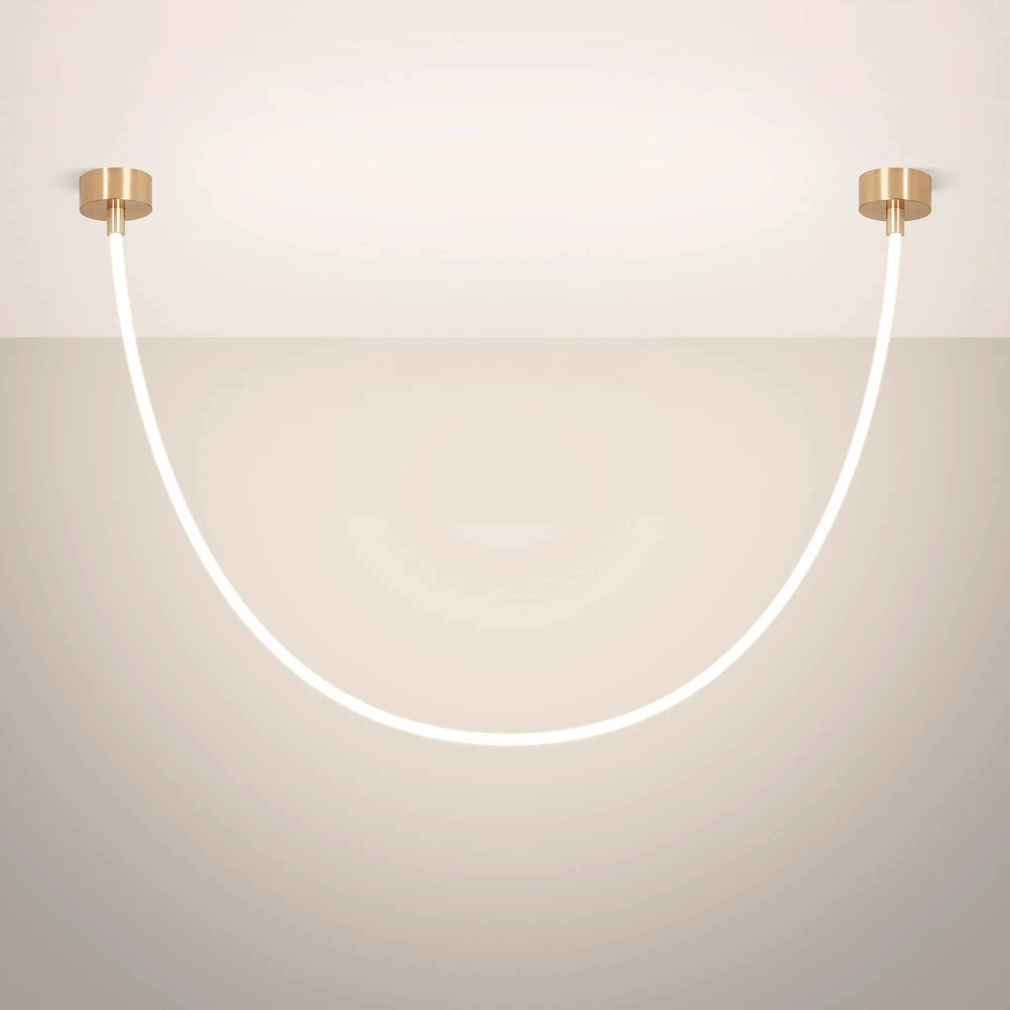Подвесной светильник. Мощность 36 Вт, св. поток 2080 лм, 57 лм/Вт, тёплый 3000 K, CRI>90, угол 360°, напряжение питания 230 В. Золотой круглый корпус из стали, силиконовая герметичная лента, степень защиты IP20. Размер: общая высота чаши 85 мм, высота чаши без вывода под неон 50 мм, диаметр вывода под неон 35 мм, диаметр чаши 130 мм, диаметр силиконовой герметичной ленты 18 мм, длина силиконовой герметичной ленты 2500 мм. Монтаж накладной. Блок питания 24 В, 1880 мА, пульсация <5%.