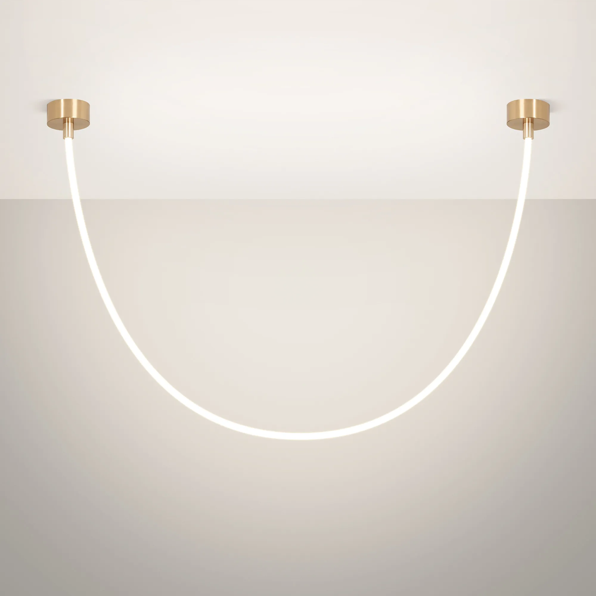 Подвесной светильник. Мощность 36 Вт, св. поток 2300 лм, 63 лм/Вт, дневной 4000 K, CRI>90, угол 360°, напряжение питания 230 В. Золотой круглый корпус из стали, силиконовая герметичная лента, степень защиты IP20. Размер: общая высота чаши 85 мм, высота чаши без вывода под неон 50 мм, диаметр вывода под неон 35 мм, диаметр чаши 130 мм, диаметр силиконовой герметичной ленты 18 мм, длина силиконовой герметичной ленты 2500 мм. Монтаж накладной. Блок питания 24 В, 1880 А, пульсация <5%.