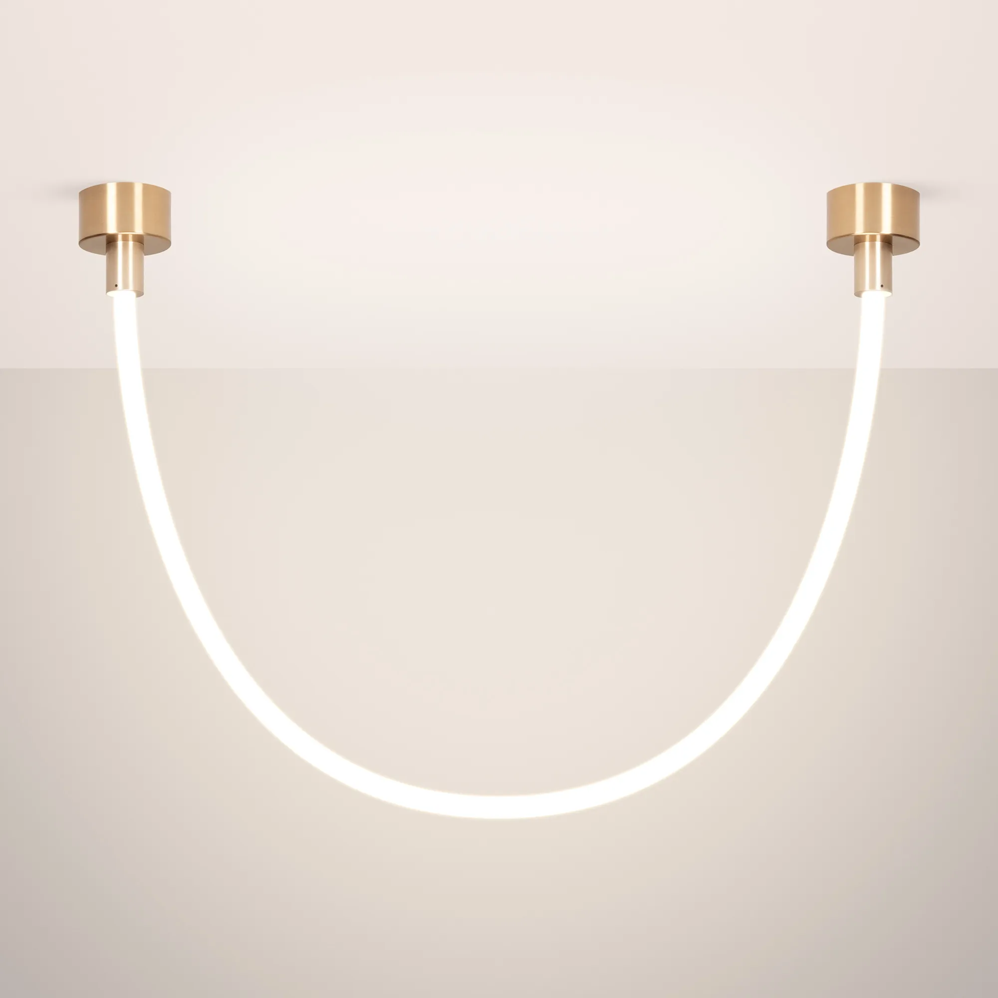 Подвесной светильник. Мощность 18 Вт, св. поток 980 лм, 54 лм/Вт, тёплый 3000 K, CRI>90, угол 360°, напряжение питания 230 В. Золотой круглый корпус из стали, силиконовая герметичная лента, степень защиты IP20. Размер: общая высота чаши 85 мм, высота чаши без вывода под неон 50 мм, диаметр вывода под неон 35 мм, диаметр чаши 130 мм, диаметр силиконовой герметичной ленты 18 мм, длина силиконовой герметичной ленты 1200 мм. Монтаж накладной. Блок питания 24 В, 750 мА, пульсация <5%.