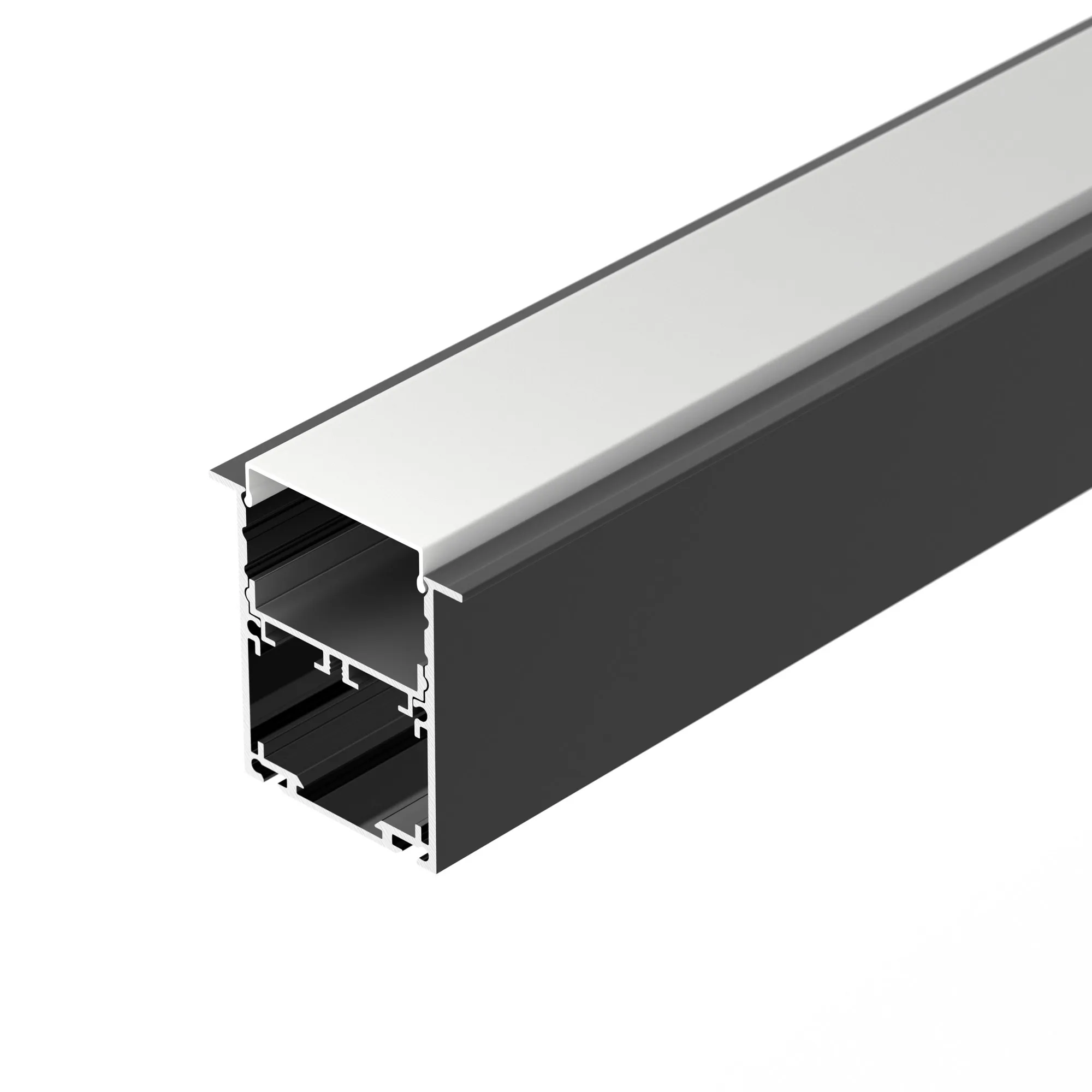 Встраиваемый алюминиевый анодированный профиль со съемной площадкой для светодиодной ленты в комплекте. Цвет - черный. Габаритные размеры (L×W×H): 2000x51,6x50,5 мм. Ширина площадки для ленты 33мм. Отсек для БП 31,5х20,8 мм. Возможность установки экрана на разных уровнях (три варианта). Экраны, заглушки и другие аксессуары приобретаются отдельно. Цена за 1 метр.