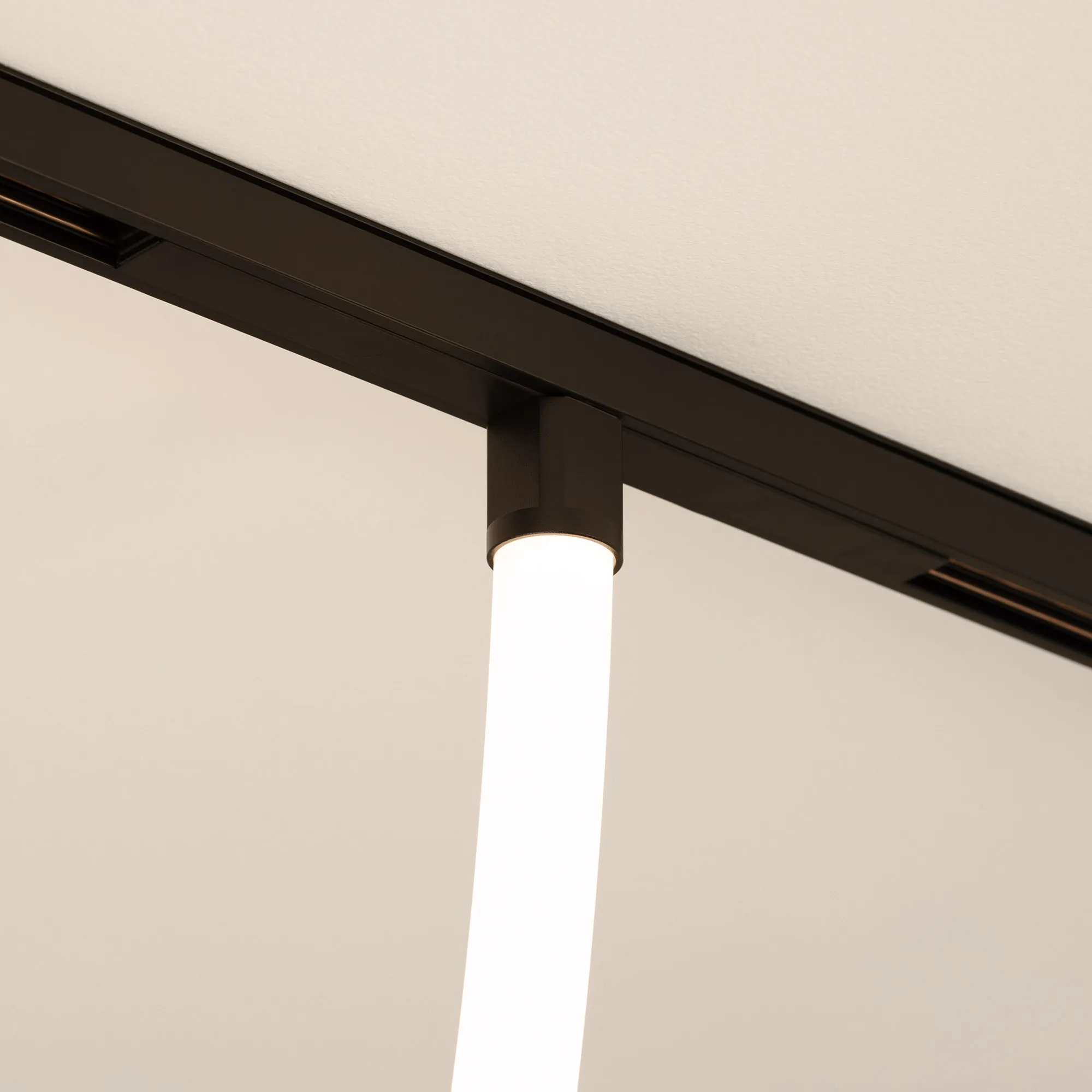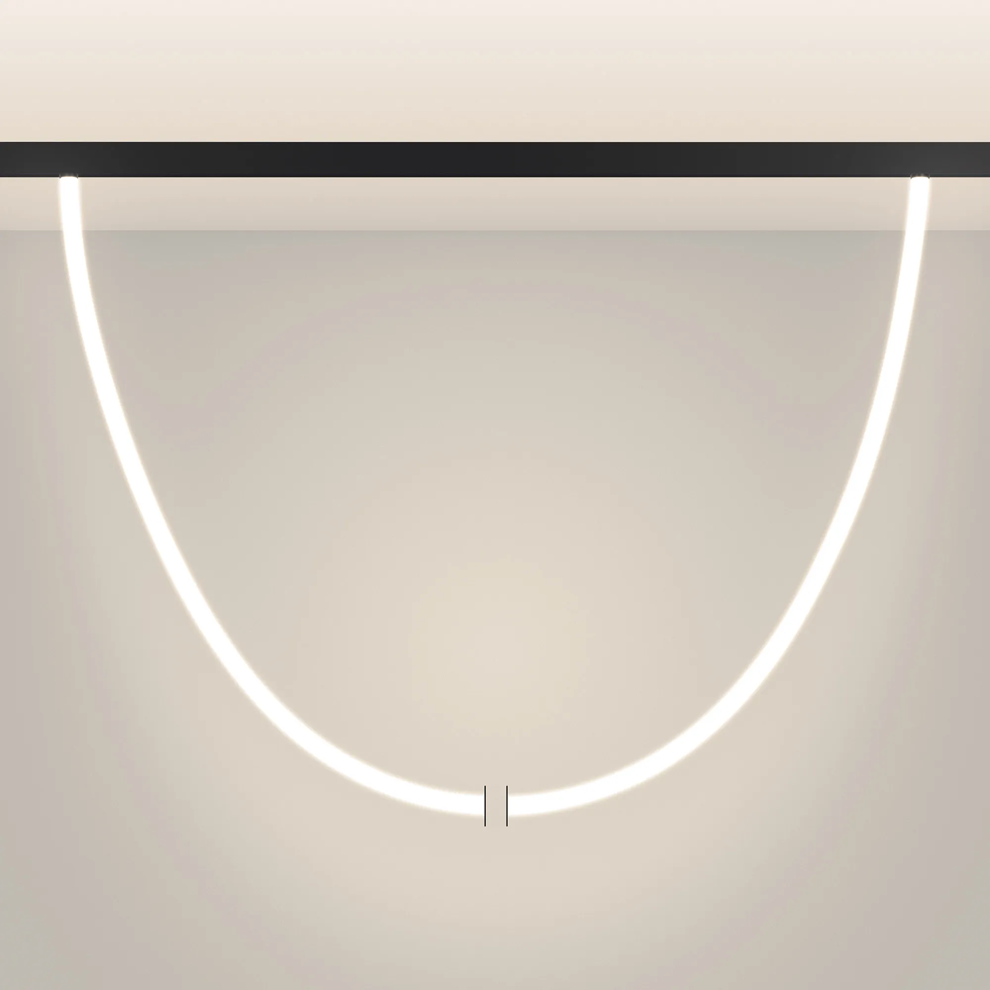 Светильник гибкий для магнитных треков серии ORIENT с управлением DALI. Мощность 70 Вт, св. поток 4235 лм, 60 лм/Вт, теплый 3000 K, CRI>90, угол 360°, напряжение питания 48 В. Матовый белый фигурный корпус из силикона с черными креплениями. Размер: диаметр 25 мм, длина 5000 мм. Монтаж на магнитный трек ORIENT. Адаптеры входят в комплект.