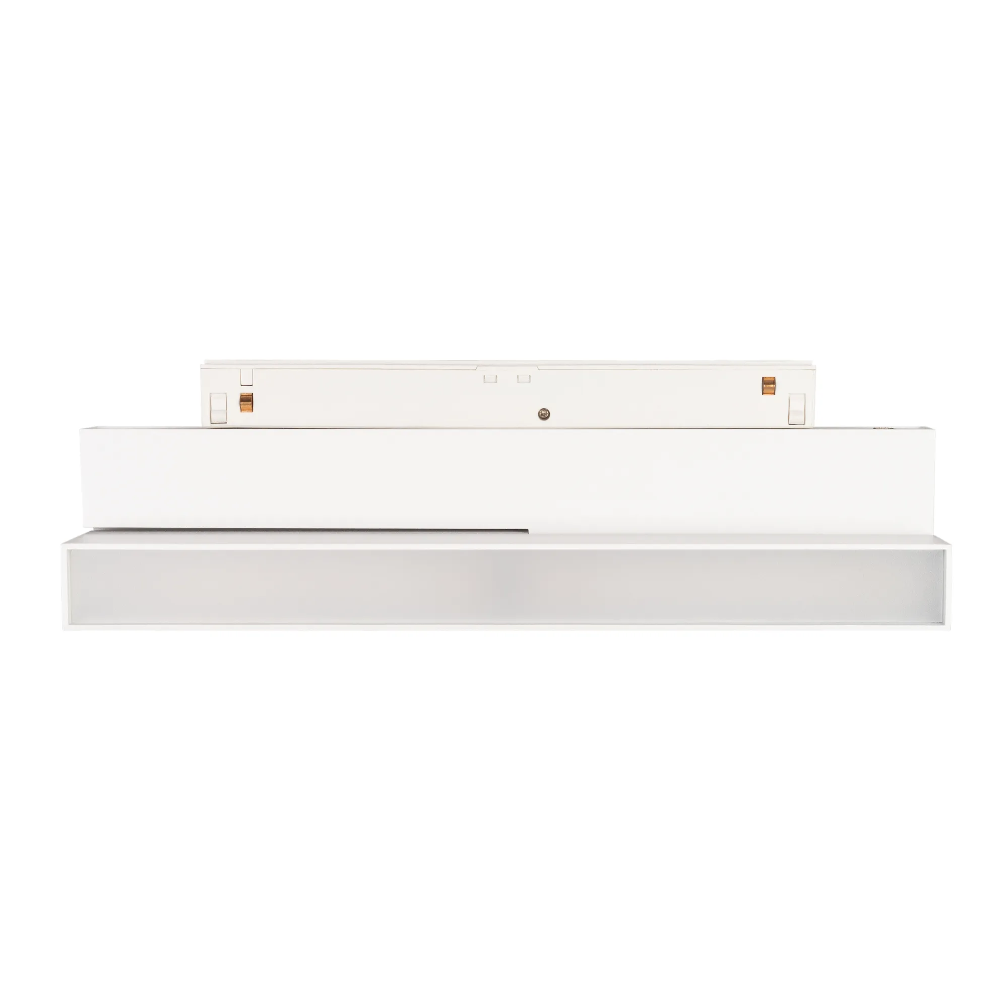 Светильник для магнитных треков MAG-ORIENT шириной 26 мм с управлением DALI. Мощность 12 Вт, св. поток 760 лм, 64 лм/Вт, дневной 4000 K, CRI>90, угол 80°, напряжение питания 48 В. Белый прямоугольный корпус из металл, экран поликарбонат, степень защиты IP20. Размер: длина 232 мм, ширина 23 мм, высота 99 мм. Монтаж на трек MAG-ORIENT. Пульсация <1%.