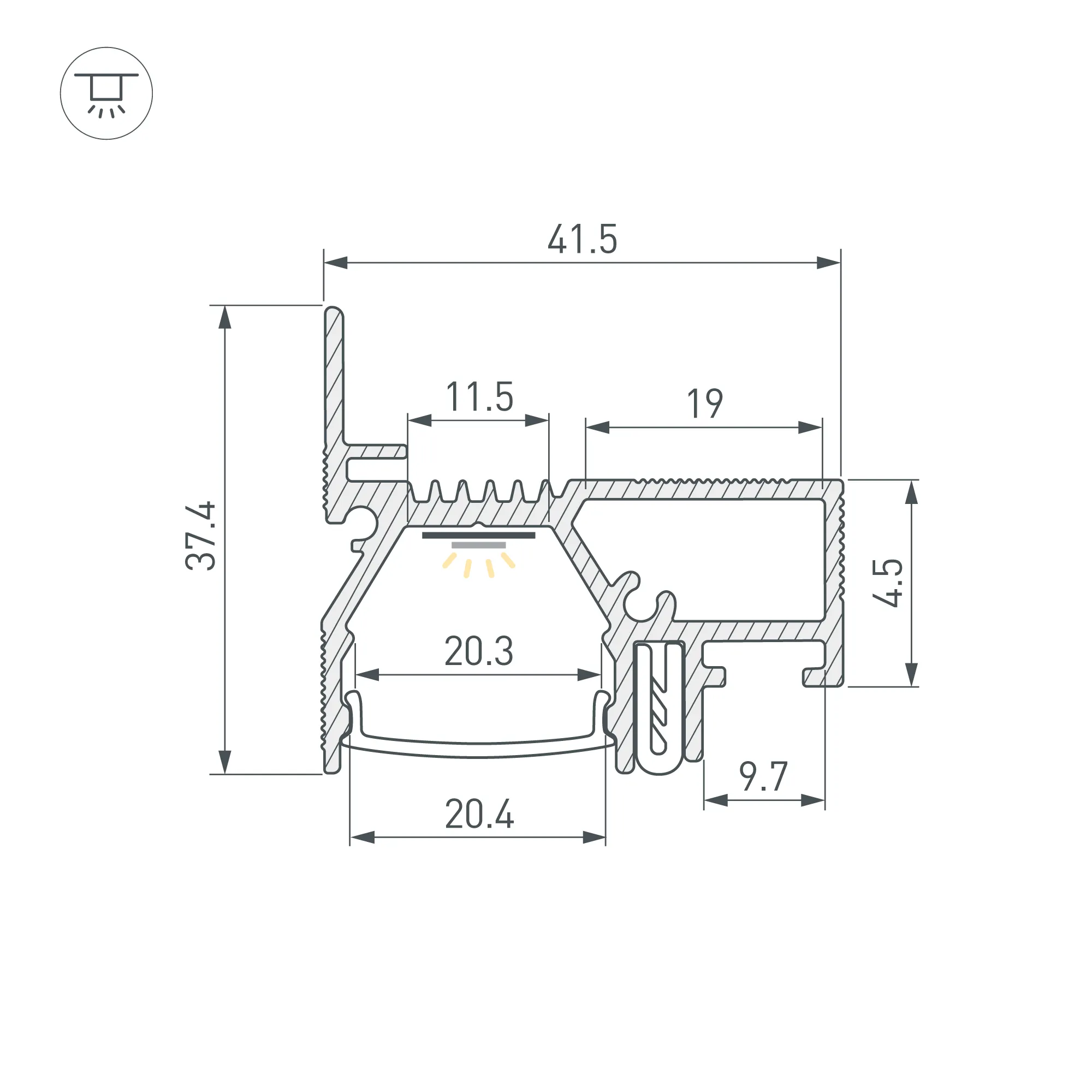 Алюминиевый профиль SLOTT for ARLIGHT для монтажа натяжных потолков (контурная подсветка). Самонесущая конструкция для крепления натяжного потолка с пазом для установки светодиодной ленты. Для создания световых линий в натяжных потолках. Демпферная система крепления натяжного потолка. Возможность установки до 3х лент. Цвет - белый RAL9003 (порошковая окраска). Ширина площадки для ленты 11,5 мм. Есть две дополнительные площадки по 10 мм. Длина 2000 мм. Цена за 1 м.
