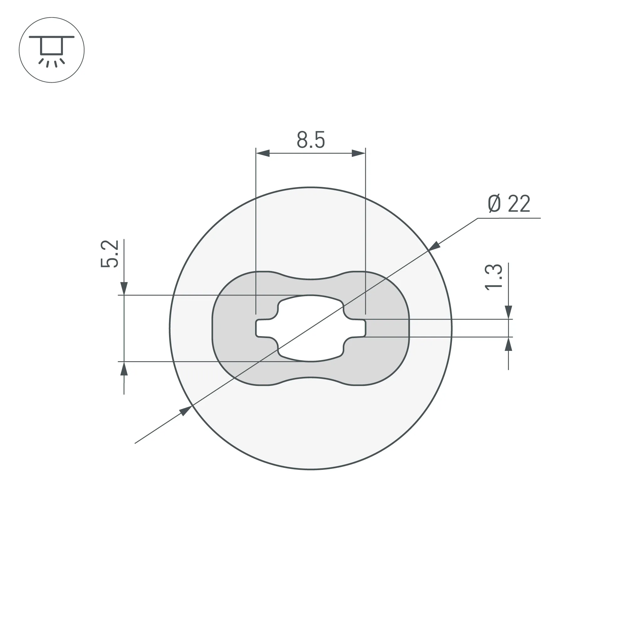 Цельнолитой силиконовый гибкий профиль, белый матовый. Габаритные размеры 5000×22×22 мм. Гнется в плоскости. Минимальный радиус изгиба в плоскости изгиба ленты 60 мм. Для установки во влажных помещениях необходима герметизация при помощи двухкомпонентного эпоксидного герметика. Класс пылевлагозащиты – IP65 (при соблюдении технологии герметизации). Для лент шириной от 6 до 8 мм, высотой до 2,9 мм и мощностью до 8 Вт/м. Необходимо использовать 2 м ленты на 1 м профиля. Мощность двух лент не должны превышать 16 Вт/м. При подборе ленты необходимо учитывать, что втяжка лент COB, герметичных лент и лент с наличием силиконового слоя может быть затруднена. Угол излучения 360°. Поставляется в катушках по 5 м. Цена за 1 м.