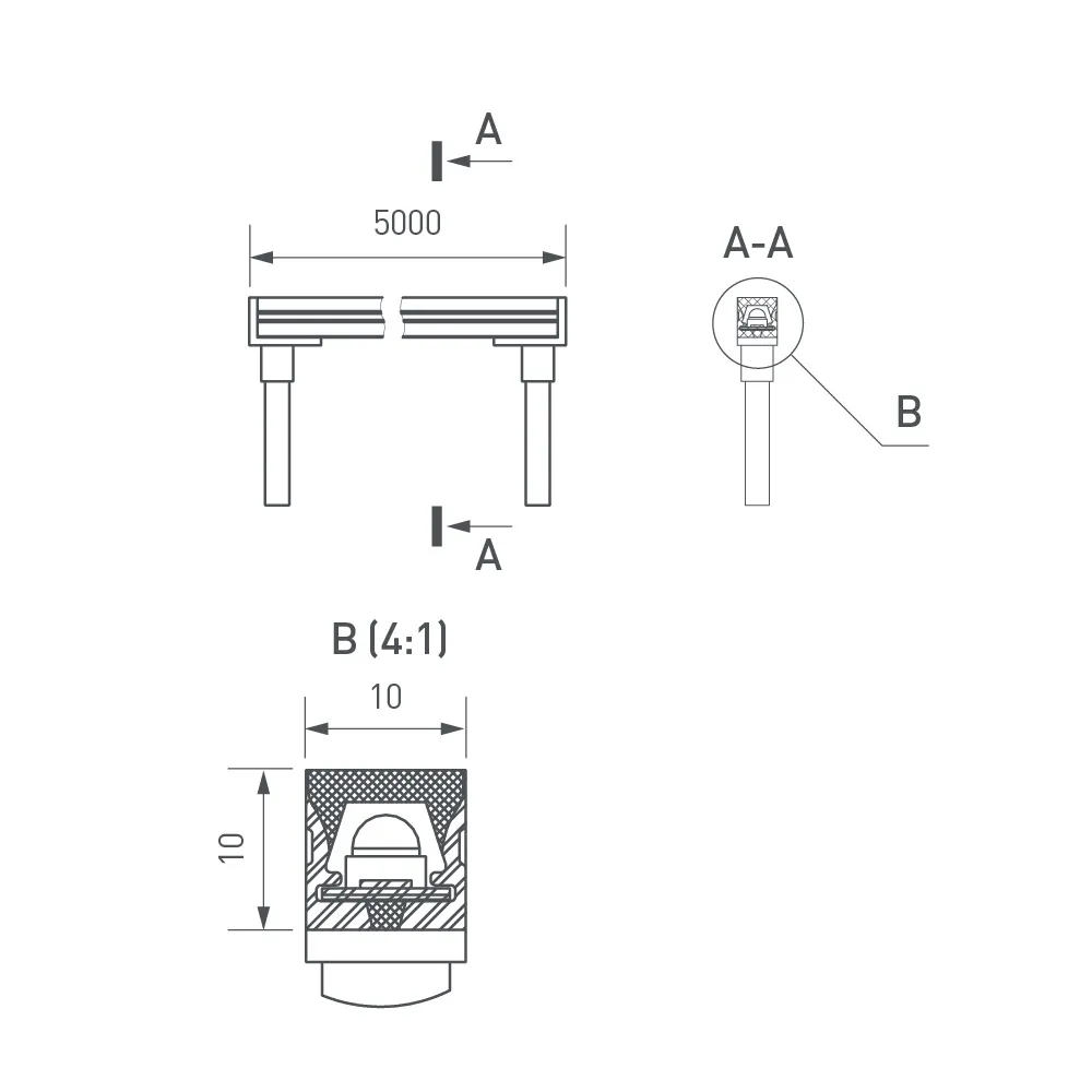 Грейзер THOR-TOP-B70-10x10mm 24V Warm3000 (15 W/m, IP67, 5m, wire x2) (Arlight, Вывод вниз, 3 года)