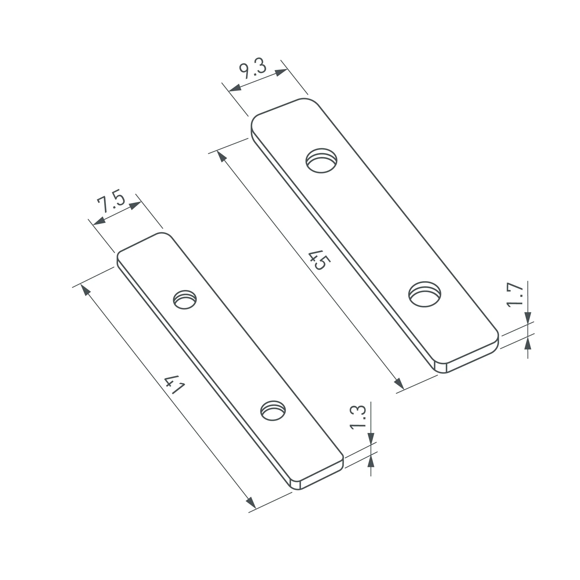 Прямой коннектор для соединения 2-х отрезков профиля SL-LINE-6070. Устанавливается в паз. В комплекте: соединитель внутренний - 2 шт., соединитель внешний - 2 шт., винт - 8 шт., шестигранный ключ - 1 шт. Цена за 1 комплект. Внешний соединитель с размерами 9,3x45,1мм крепится в верхнем пазе профиля LINE-6070. Соединитель внутренний имеет размеры 7,6x41,1мм и фиксируется в нижнем внутреннем пазе профиля LINE-6070.