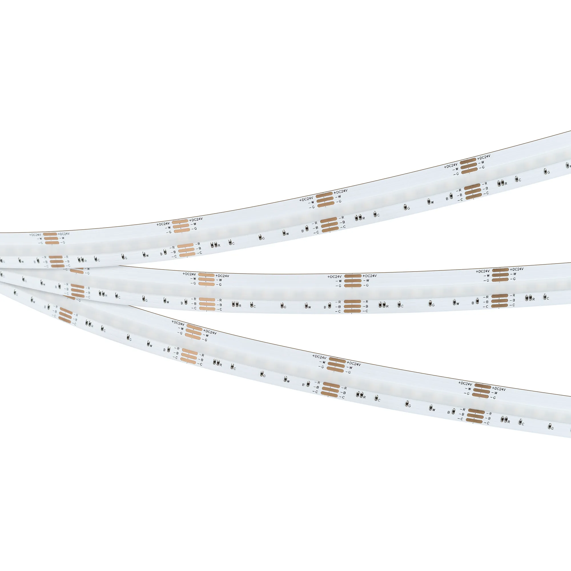 Светодиодная лента сплошного свечения COB серии X840. Светодиоды CSP, 840 шт/м, белая плата шириной 5 мм, скотч 3M. Цвет RGB + MIX ТЕПЛЫЙ 2700K/БЕЛЫЙ 6000K, индекс цветопередачи CRI>90, угол 160°. Питание 24 В, мощность 16 Вт/м (80 Вт на 5 м). Размеры 5000x12x1.8 мм. Мин. отрезок 41.6 мм. Цена за 1 м. Обязательна установка на профиль.