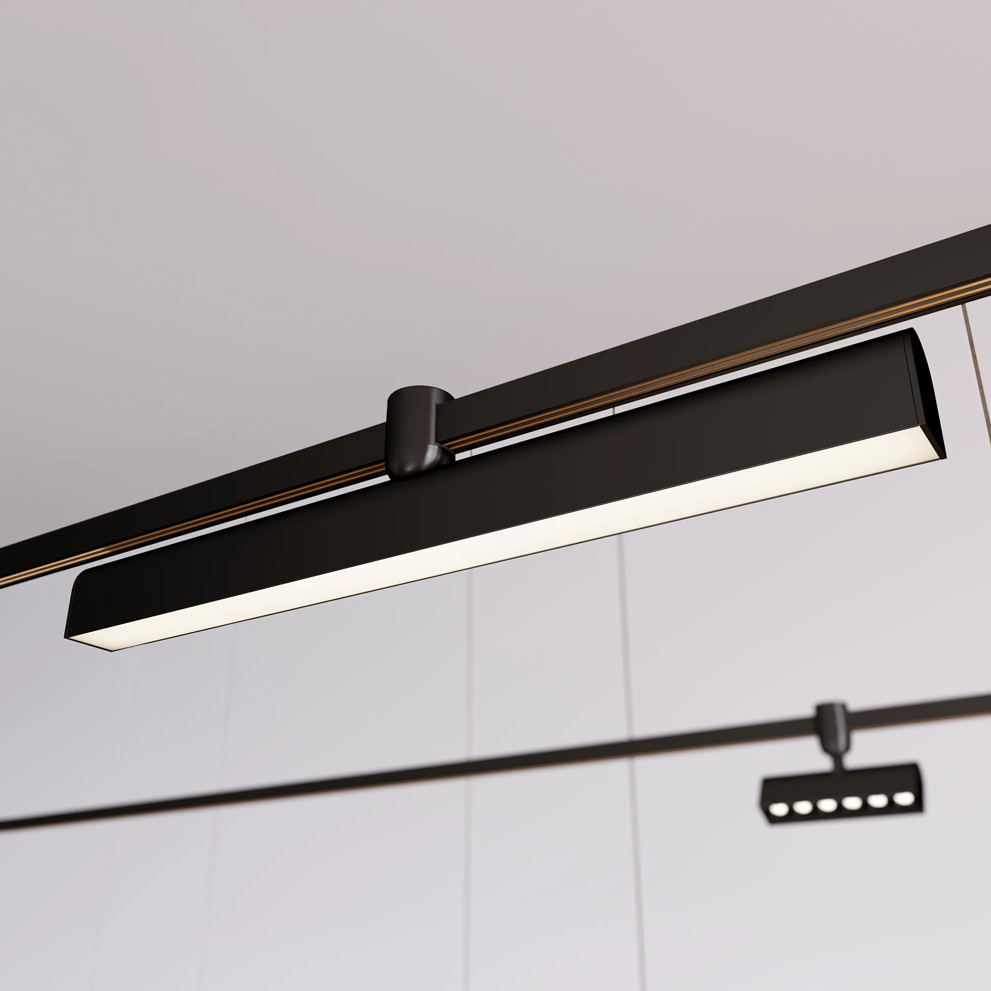 Светильник для треков APRIORI шириной 17мм. Мощность 15 Вт, св. поток 600 лм, 40 лм/Вт, теплый 3000 K, CRI>90, угол 120°, напряжение питания 48 В. Черный линейный корпус из алюминия, экран поликарбонат, степень защиты IP20. Размер: длина 500 мм, ширина 38 мм, высота 95 мм. Монтаж на трек APRIORI 17 мм. Пульсация <1%. Возможно диммирование по ШИМ (PWM) или не адресное управление при использовании диммируемого драйвера Dali, 0-10V, TRIAC.