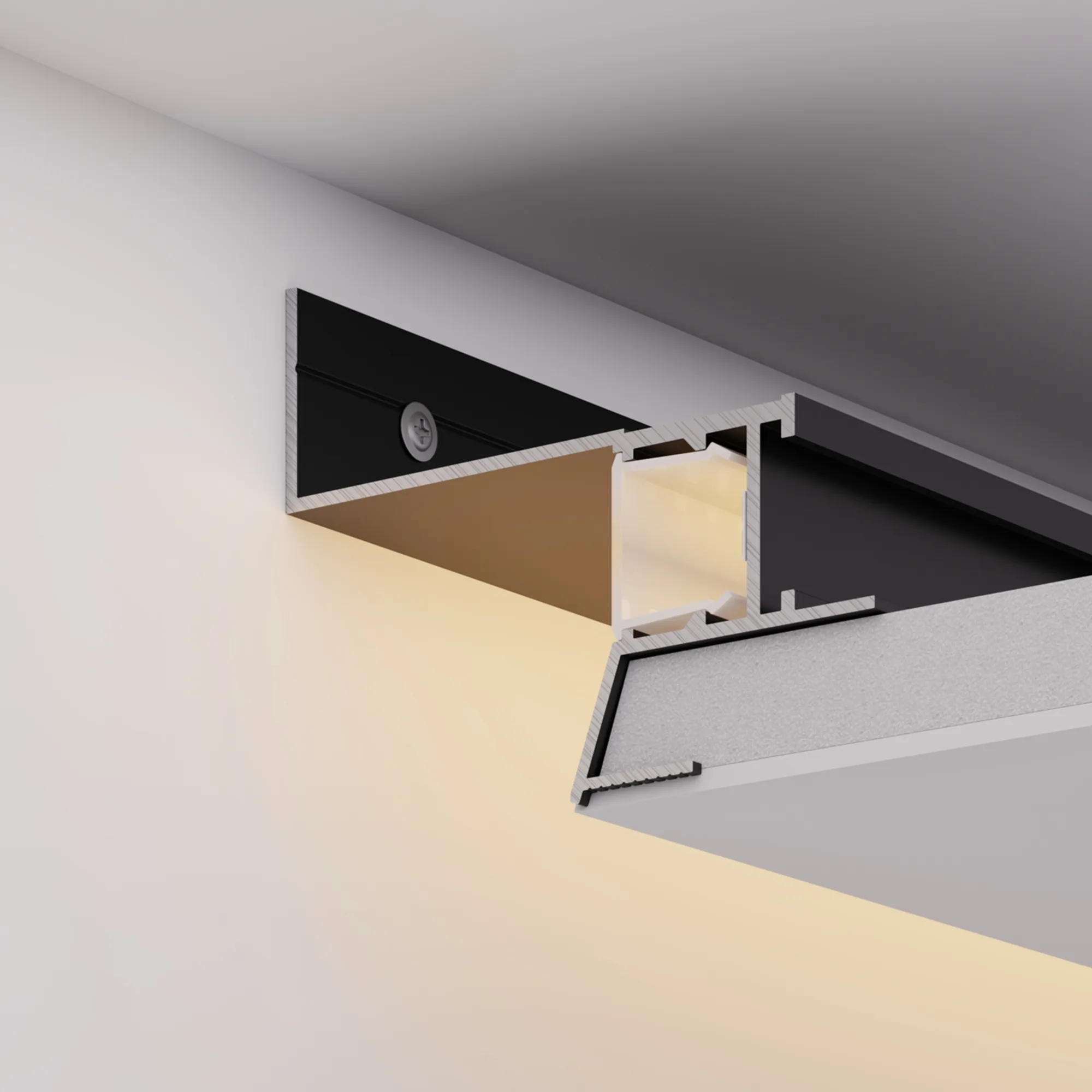Алюминиевый встраиваемый профиль для светодиодных лент и линеек. Профиль для создания эффекта парящего потолка с мягким свечением по периметру помещения. Цвет- черный RAL9005 (порошковая окраска). Габаритные размеры (L×W×H): 3000х78,5х62,5 мм. Ширина площадки для ленты 20 мм. Ширина зазор между потолком и стеной - 39,2 мм. Экраны, заглушки и другие аксессуары приобретаются отдельно. Цена за 1 метр.