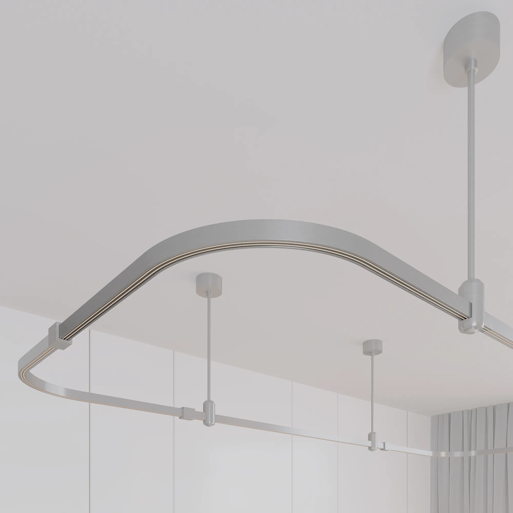 Подвесной угловой трек APRIORI, DC48V. Материал алюминий, цвет титан. Размер ДxШxВ: 500x500x22мм. Подвесы, коннекторы, светильники и источники питания приобретаются отдельно.