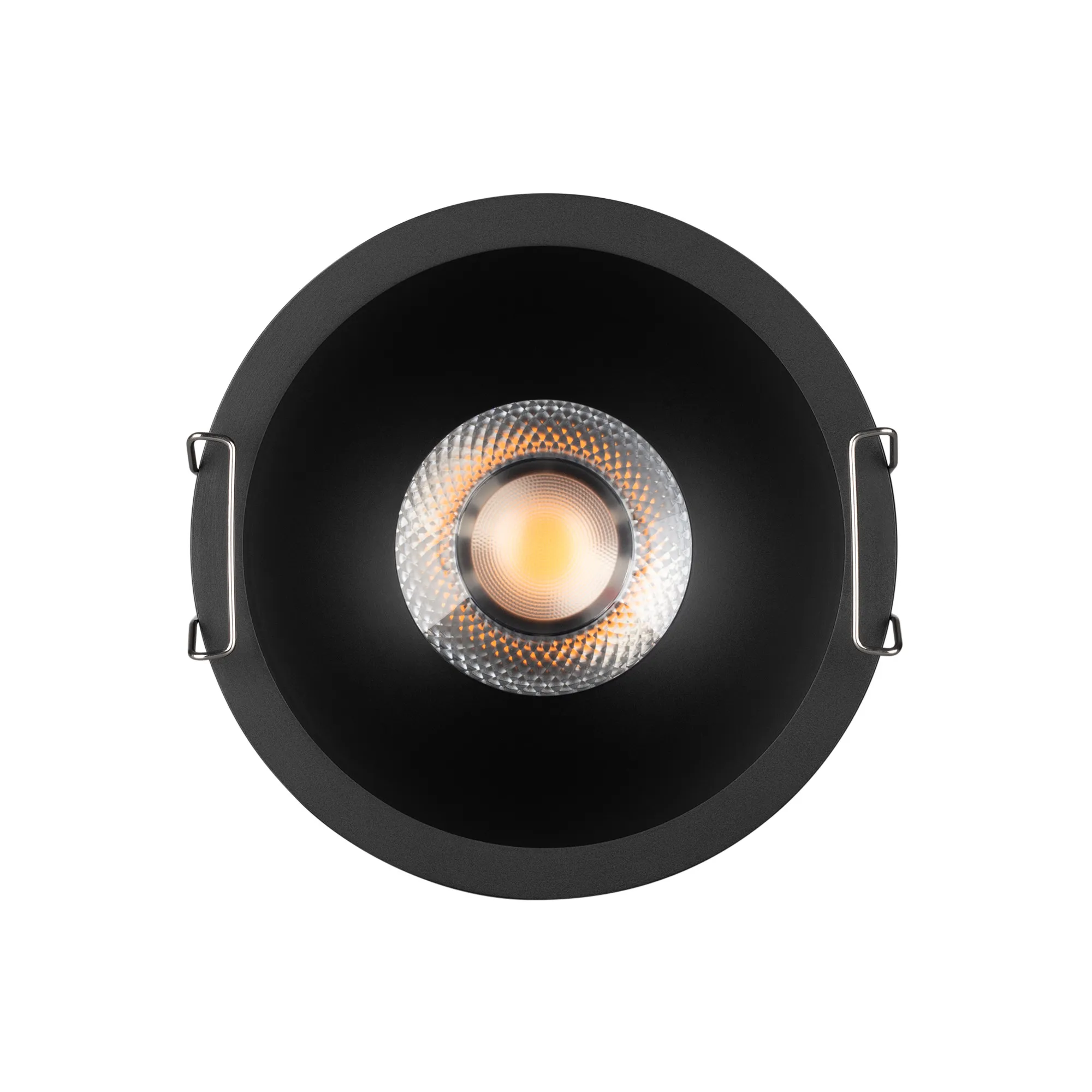 Встраиваемый светильник даунлайт. Мощность 15 Вт, св. поток 1260 лм, 84 лм/Вт, дневной 4000 K, CRI>90, угол 50°, напряжение питания 230 В. Чёрный круглый корпус из алюминия, степень защиты IP20. Размер: диаметр 106 мм, высота 63 мм. Монтаж встраиваемый, установочное отверстие: диаметр 95 мм. UGR<14. Драйвер 27-40 В, 350 мА, пульсация <2%.