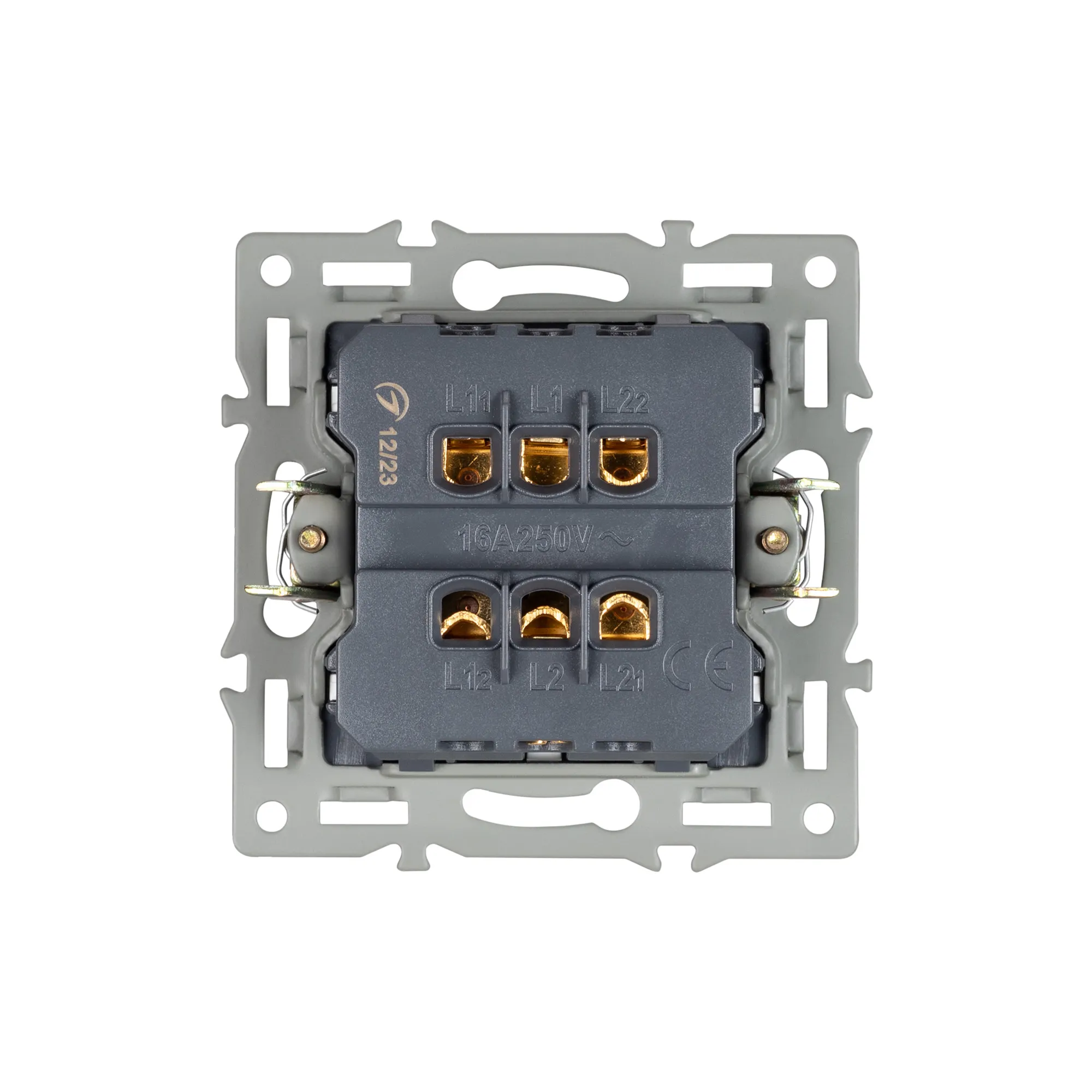 Механизм выключателя клавишный на 1 пост 2 клавиши (проходной), с суппортом из алюминия. Цвет - белый. Степень пылевлагозащиты - IP20.