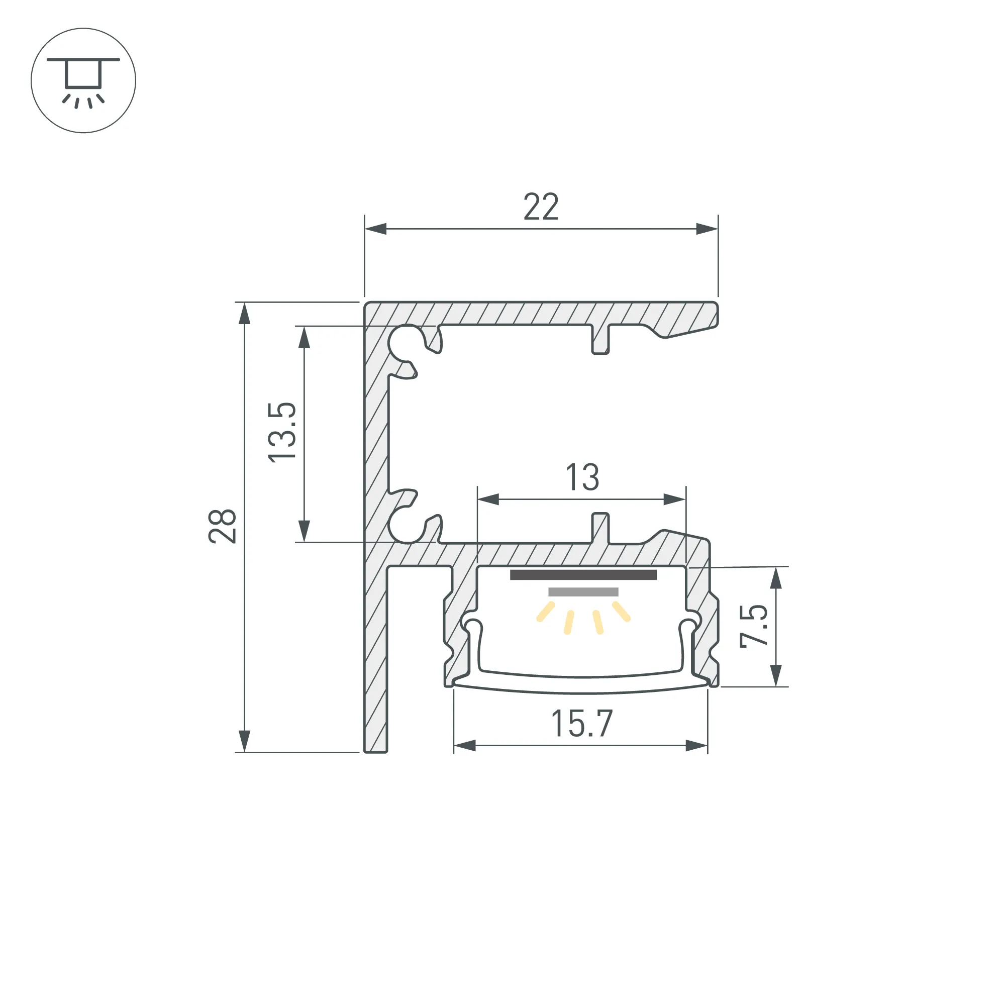 Настенный алюминиевый анодированный профиль черного цвета для светодиодных лент и линеек с односторонним свечением для создания эффекта «отраженного света». Габаритные размеры (L×W×H): 2000x22x28мм. Ширина площадок для лент 13,4 мм. Экраны, заглушки и другие аксессуары приобретаются отдельно. Цена за 1 метр.