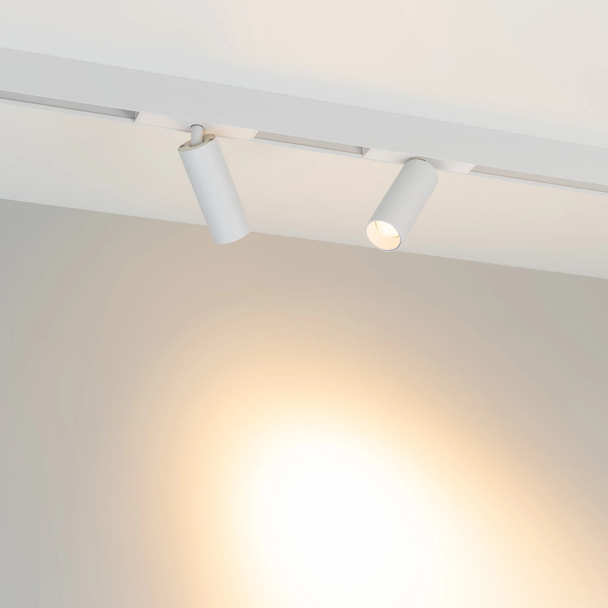 Светильник поворотный для магнитных треков шириной 25 мм, 9 Вт. Цвет свечения ТЕПЛЫЙ 3000K, световой поток 630 лм, угол 30°, CRI>90. Корпус прямоугольный, металл, цвет белый, IP20. Размеры LxWxH 100x20x120 мм. Входное напряжение DC24V, мощность 9 Вт. Драйвер AС230V/DC24V поставляется отдельно.Диаметр светоизлучающего модуля 35 мм. Диммируется только с 026407, 027633.
