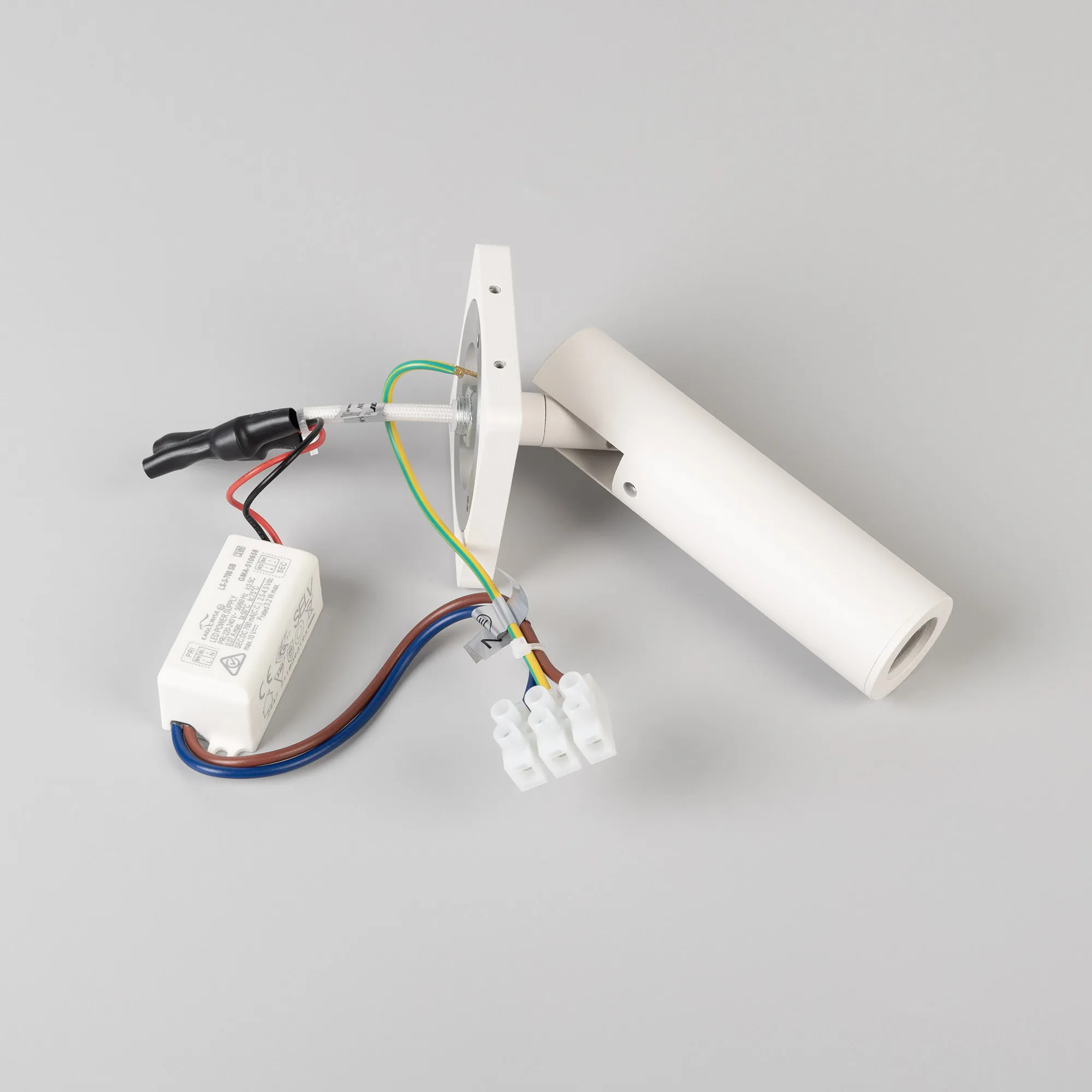 Встраиваемый настенный светильник 3 Вт, белый алюминиевый корпус без кнопки включения. Цвет ТЕПЛЫЙ БЕЛЫЙ 3000K, св.поток 174 лм, CRI(Ra)>90, угол 20°. Размер Основание 60x60х8 мм, Светоизлучатель Ø30×110 мм. IP20. Питание AC220-240V, 3 Вт, драйвер 2,5 - 4,5 В, 700 мА., пульсация < 1%