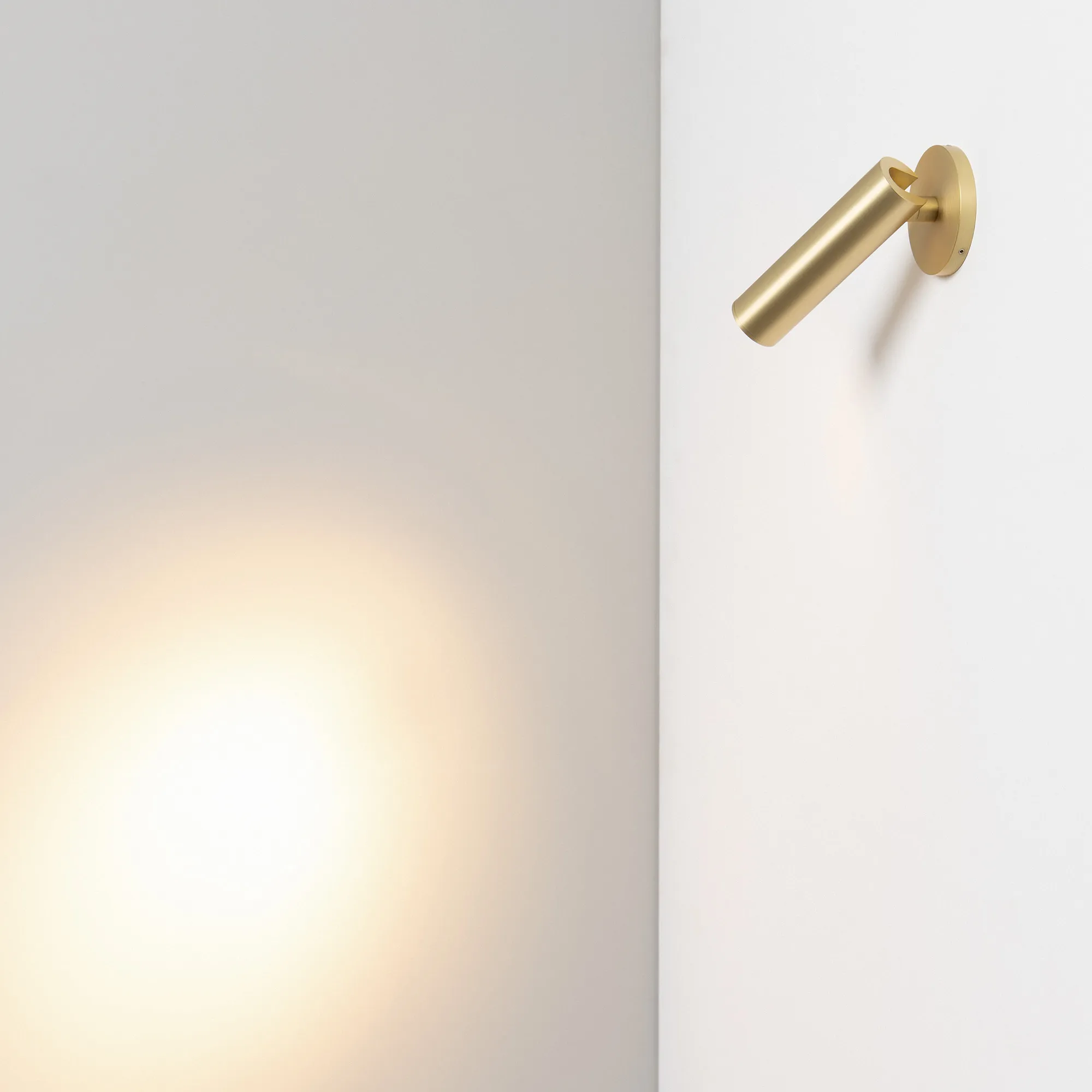 Встраиваемый настенный светильник 3 Вт, золотой алюминиевый корпус без кнопки включения. Цвет ТЕПЛЫЙ БЕЛЫЙ 3000K, св.поток 174 лм, CRI(Ra)>90, угол 20°. Размер Основание Ф60х5 мм, Светоизлучатель Ø30×110 мм. IP20. Питание AC220-240V, 3 Вт, драйвер 2,5 - 4,5 В, 700 мА., пульсация < 1%