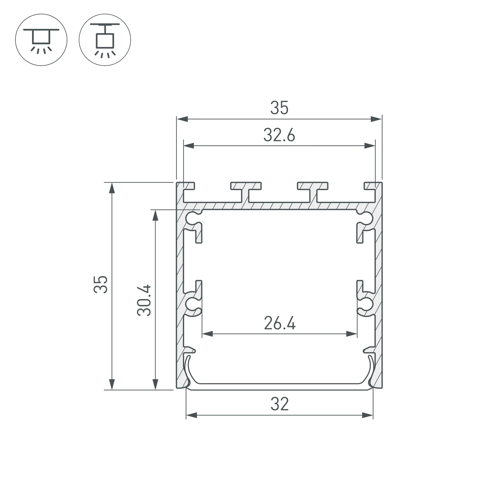 Алюминиевый профиль для светодиодных лент и линеек. Цвет - черный RAL9005 (порошковая окраска). Габаритные размеры (L×W×H): 2000x35x35 мм. Ширина площадки для ленты 26,4 мм. Экраны, заглушки и другие аксессуары приобретаются отдельно. Цена за 1 метр.