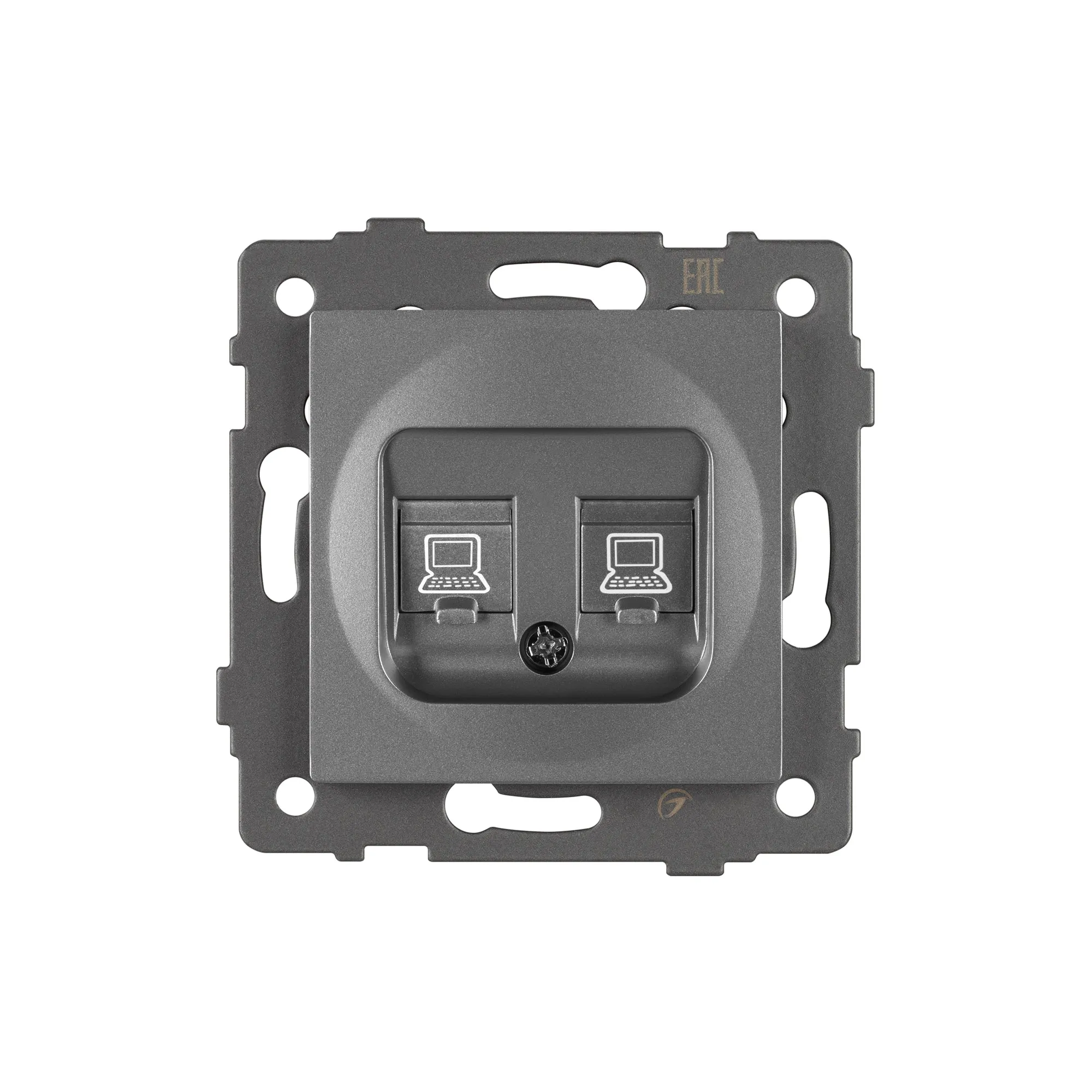 В магазине Arled Market Вы можете купить "Механизм компьютерной розетки двойной SCT-MPC2-PL-GR-V (RJ-45, CAT6) (Arlight, -)"